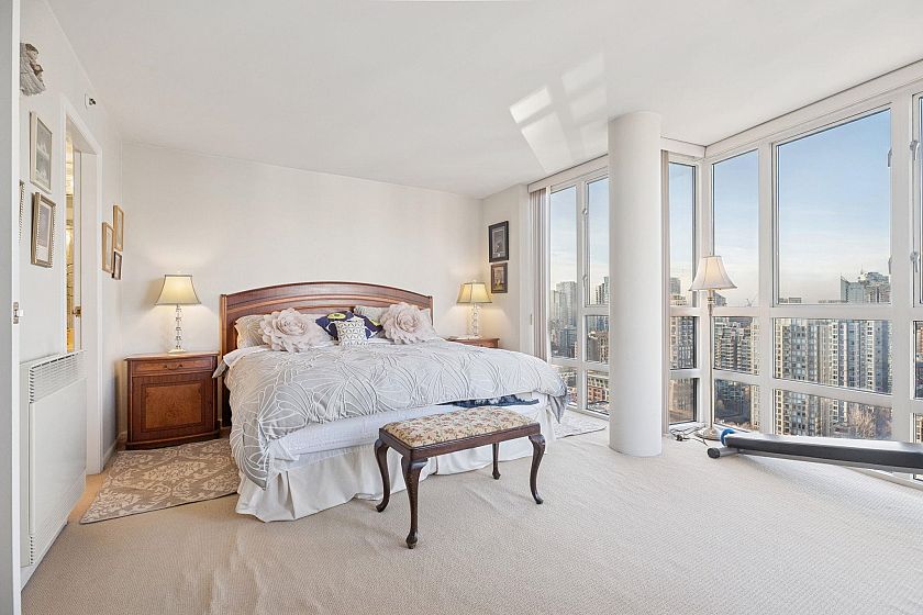 Experience true penthouse living in the heart of Yaletown. This exceptional 3-bedroom, 3-bath, two-level home offers over 1,800 sq ft of well-designed living space and a private patio with sweeping views of Downtown Vancouver and BC Place. The main level features hardwood floors, floor-to-ceiling windows, a cozy gas fireplace, spacious dining area with built-in bar, and a kitchen with stone countertops and stainless steel appliances. Upstairs, the primary bedroom offers comfort and privacy, with two additional bedrooms and ample storage. Includes one parking stall, one storage locker, and access to a gym and indoor pool. Steps to the Seawall, transit, dining, and shopping. No pets. This unit features an installed storage cabinet in the parking stall provided by strata. OH: Apr 11,Sat 1-3PM