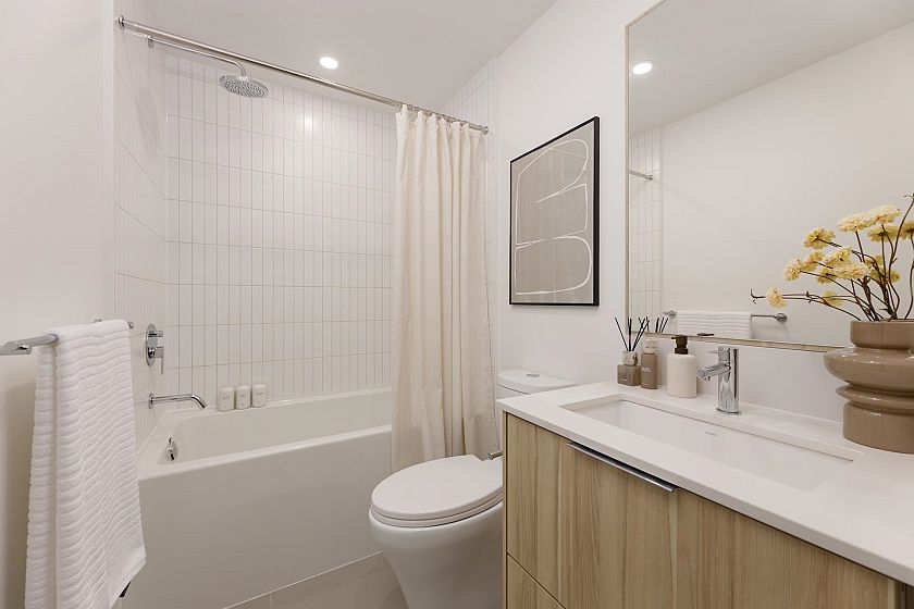 Move in Ready Grafia by Porte Homes is located on a quiet residential street just steps from Commercial Drive, transit and schools. Designed by award winning interior designer BYU and Integra Architecture. The development is a 6 story wood-frame building and amenities such as a social lounge, fitness center, dog wash station, rooftop terrace, garden plots and more. This 949 SF north east facing three bedroom home features full size stainless steel appliances with gas stove. Laminate flooring throughout. Show Home is now open from Saturday to Monday 12 to 5.