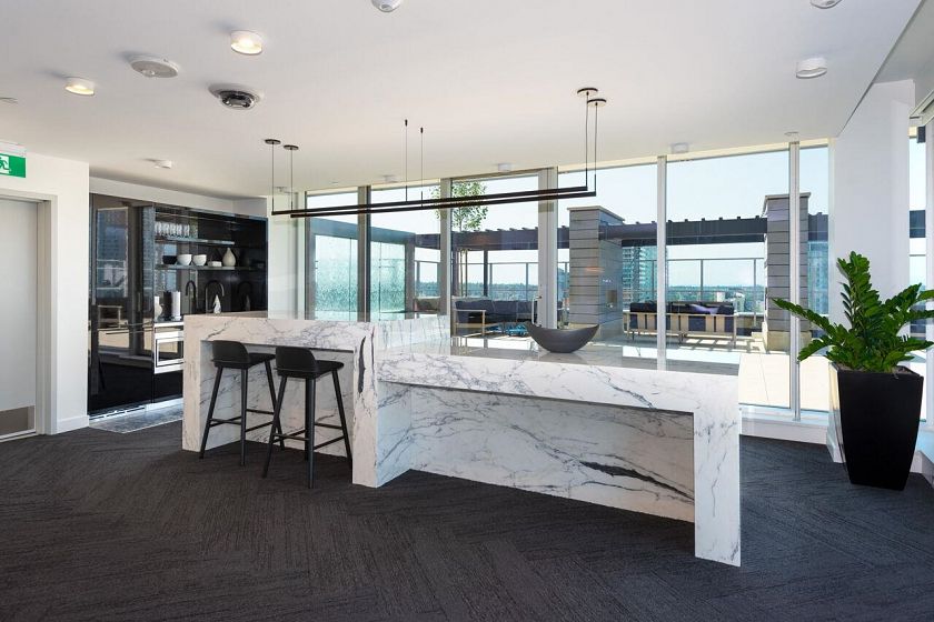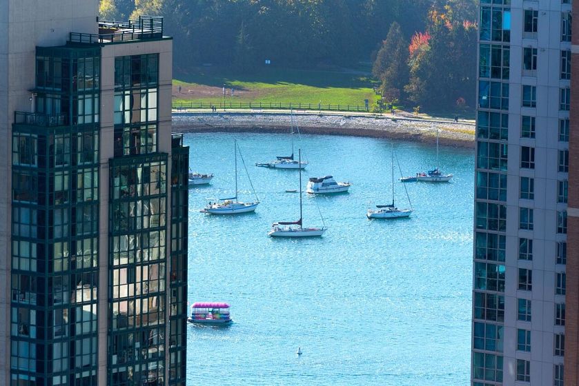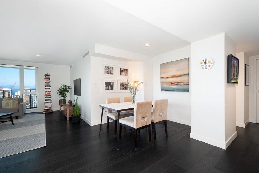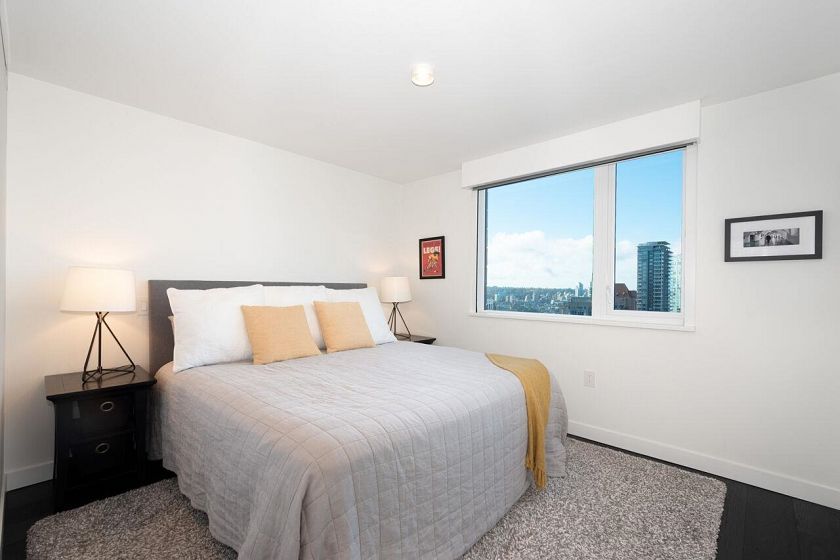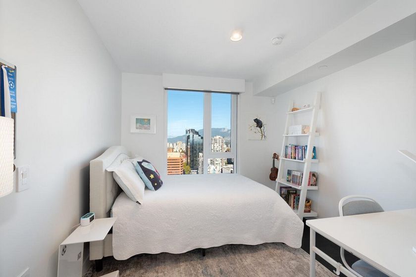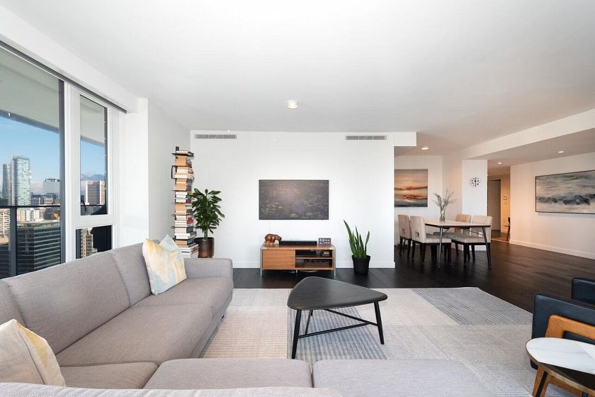 SW Corner Best Floorplan at 8X on the PARK. Fabulous views to the North Shore Mountains, English Bay, the city, & Emery Barnes Park just at your front door. Like new, 3 bedrooms & 2 &1/2 baths allow for spacious living, great entertainment. The bright open kitchen features quartz counters, all Miele appliances, new Miele gas cook top, steam oven, & Sub Zero fridge. The primary bedroom has a large walk in closet & huge 5 piece marble bathroom. Two other bedrooms on the other side of the living area one with an ensuite & a powder room for guests. A/C, H/W floors, black out blinds in bedrooms, all blinds electric, & built in shelves throughout. Large pantry & foyer. 24 hour concierge, rooftop deck w/fireplaces/ BBQ & gym. Bike lockers, bike elevator & pet wash station. Come take a look...