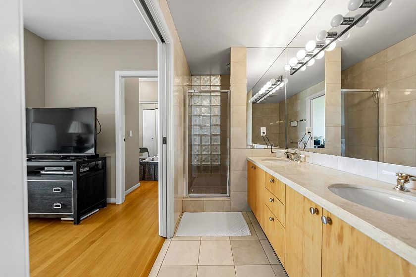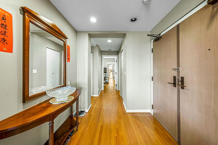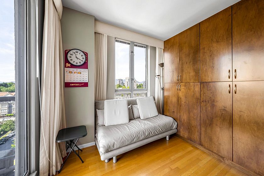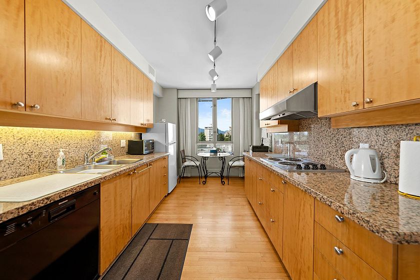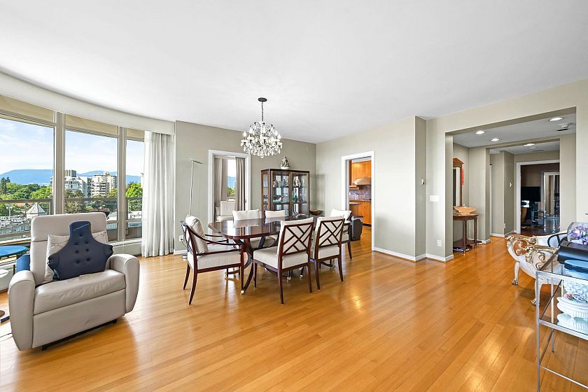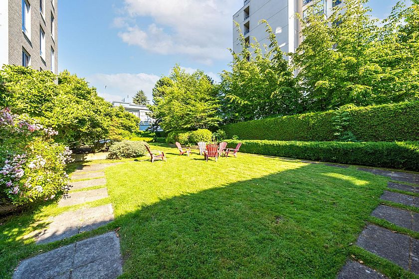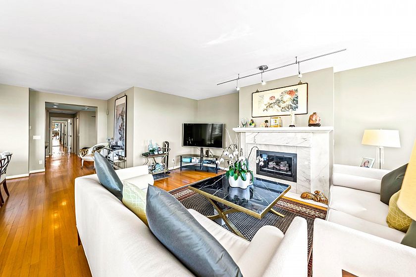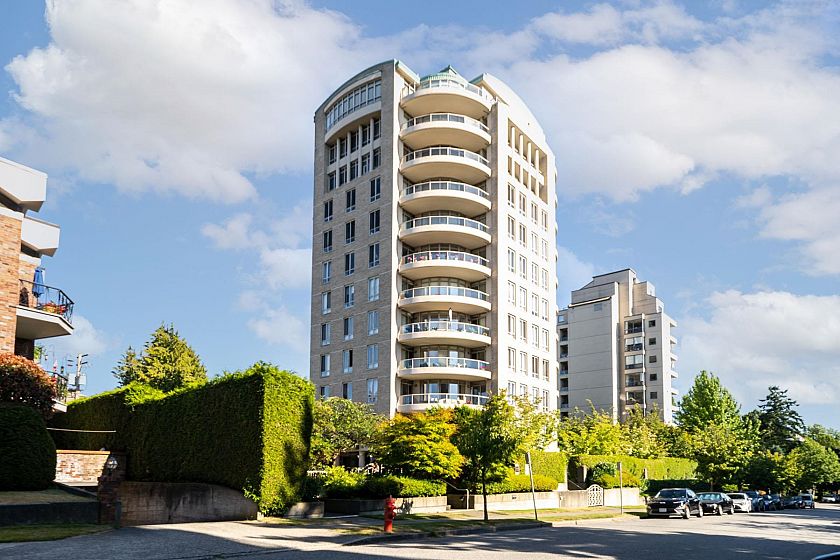 Claridge in the centre of Kerrisdale. This bright & airy 2 bedroom & den with 2.5 baths on the 9th floor offers 1616 sf of comfortable living. North East and West exposure. Nice outlook w/some water view to the West. 2 suites per floor & serviced by 2 elevators. Spacious living & dining area can fit your house size furniture. Master bedroom has walk in closet. The den can be used as a 3rd bedroom. Oak flooring, crown moulding, gas fireplace. Enclosed kitchen with windows & nook. Covered balcony. 2 parking stalls and 1 storage locker. Automatic front door. Banks, shops, restaurants, community centre and schools are within walking distance. It is surely a friendly building with great neighbours waiting for you to call it home.