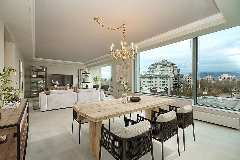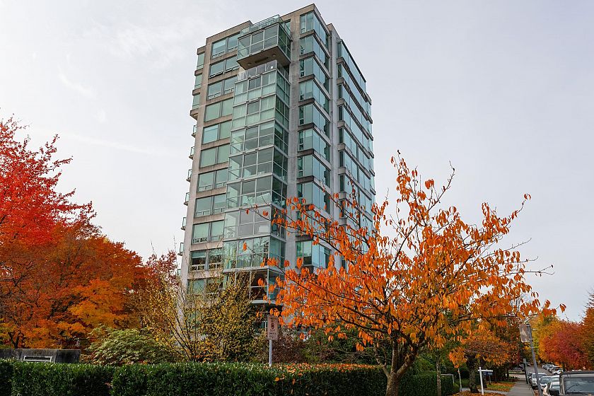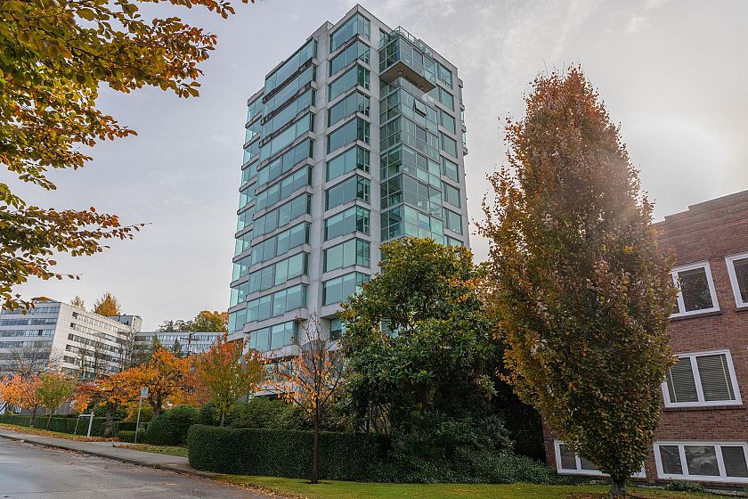 The renowned Bing Thom Building offers seemingly limitless sweeping views spanning the city skyline and mountains. Thoughtfully positioned to take advantage of the breathtaking outlook, this generously proportioned 3 bedroom, 2 bathroom home boasts a grand principal room, ample room enough for your house sized furniture The kitchen opens to an enclosed solarium, ideal for a cozy breakfast room or home, plus ample storage throughout. Set in an unparalleled location just steps to South Granville amenities, plus easy access to downtown and airport, great schools, Vancouver Lawn and Tennis Club and Arbutus Club. You’ll appreciate the large storage room and parking stall. This home is ready for you to imprint your style and make it your own. A spectacular opportunity in this iconic boutique.