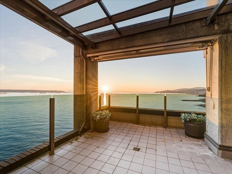 Les Terraces Exclusive Dundarave Waterfront Living. With only 11 private residences. 1 suite per floor with 3,600 sq. ft. of house-sized living in one of West Vancouver’s most prestigious boutique waterfront buildings. Timeless architecture, refined coastal design, and quality, the residence features expansive principal rooms, 3 bedrooms plus office, open layout, multiple balconies, and coffered wood ceilings. Floor plan offers Buyer to live in the home as it is today or renovate and customize. Concierge service, secure parking for 3 vehicles, and indoor pool. Waterfront living is at your doorstep, with direct access to WV seawall, beaches, parks, recreation + senior centre, Dundarave Village shopping, restaurants, and the iconic pier—an unbeatable waterfront lifestyle and location.