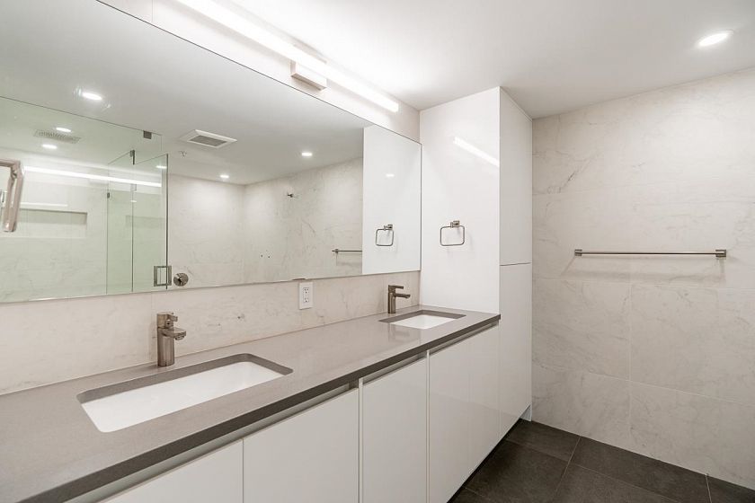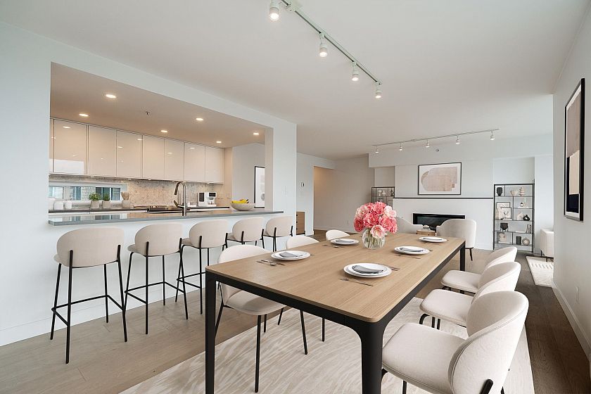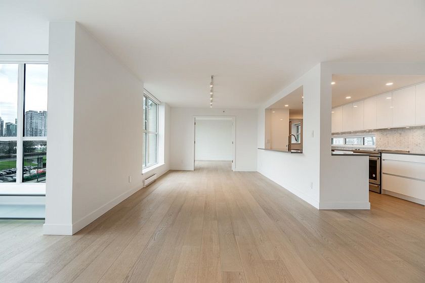 Step into this fully renovated residence with breathtaking unobstructed views of False Creek, Science World, city skyline & North Shore mountains. This 3 bedroom, 2 bathroom home offers 1,817sqft of single level living with bright open concept layout. The sleek kitchen features stone counters & s/s appliances, flowing into expansive living and dining areas ideal for full sized furniture. A windowed den works perfectly as an office or nursery. Additional highlights include gas fireplace, in suite laundry, two side by side parking stalls & storage locker. Enjoy resort style amenities including indoor pool, sauna, gym & courtyard. Prime convenient location steps to SkyTrain, Olympic Village, Seawall, Science World & new St Pauls's Hospital.