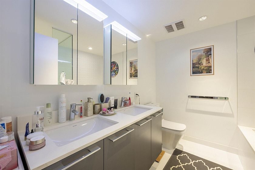Rare unit with unbeatable view at the luxury building - Kensington Gardens by Westbank! Enjoy world-class views of the City skyline, water& Mountains from this 3 bed + 2 bath + den + 2 private balconies executive home. Each bedroom and living room enjoys the same view from the glass wall. Air-conditioned interior features wide-plank engineered hardwood floors, durable Corian counters, imported European cabinetry, Blomberg/Miele s/s appliance package incl side-by-side refrigerators. Amenities include outdoor pool, hot tub, sauna, exercise facility, party room, theatre, study room & playground. Bus stop, restaurants and T&T supermarket are downstairs within 1 minute! The Pictures were taken before tenancy.1 parking 1 locker. Showings are preferred on Sunday afternoon.