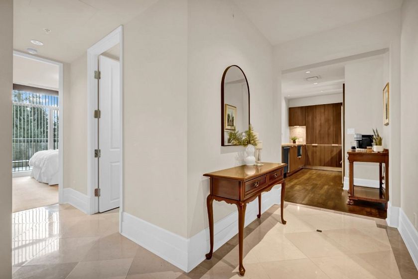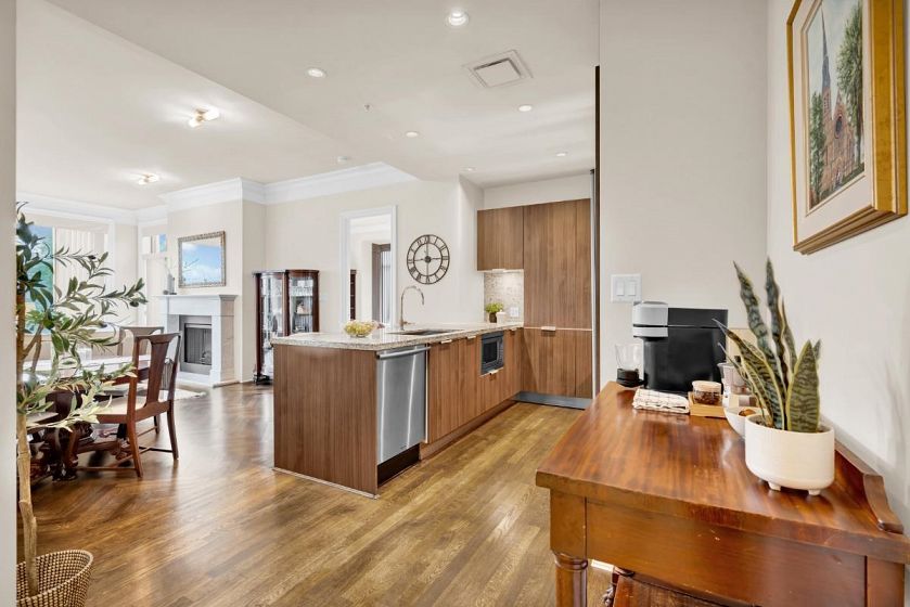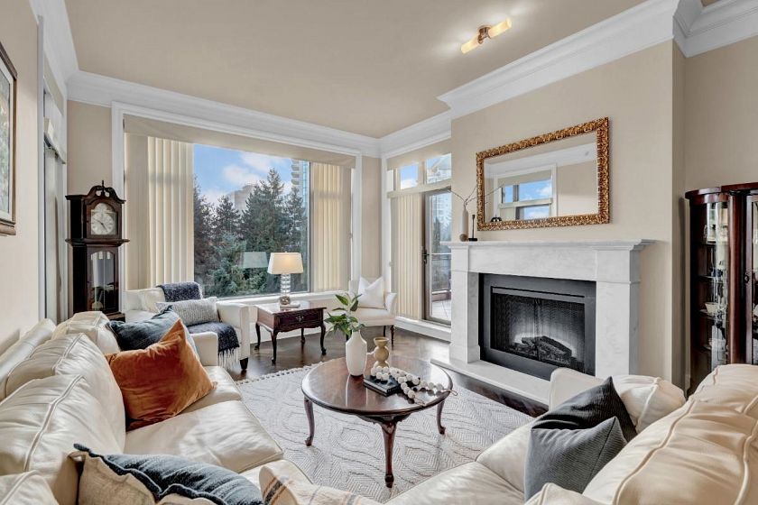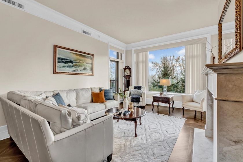 A rare sub-penthouse at Water’s Edge, this ~1,450 sq. ft. residence is one of the few large-format homes in the building. Offering 2 bedrooms plus a generous den (ideal as a third bedroom), the open-concept layout is enhanced by soaring 12-ft ceilings and floor-to-ceiling windows that flood the home with natural light. Bright south-facing exposure, two spacious decks, and oak herringbone hardwood floors elevate the living experience. Thoughtful features include an oversized laundry room, 2.5 bathrooms, two parking stalls, and one storage locker. Set directly on the Capilano River, enjoy exceptional trail access to Ambleside, Dundarave, and Park Royal, with quick bridge access and downtown connectivity. An exceptional high-end West Vancouver home combining scale, light, and location.