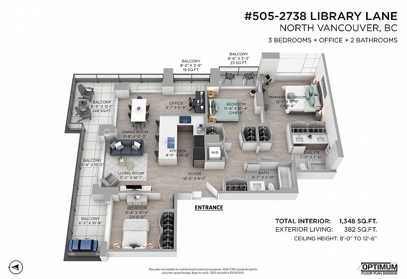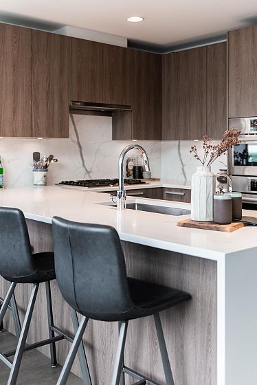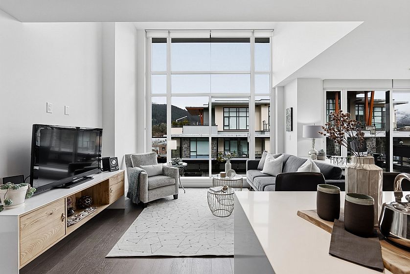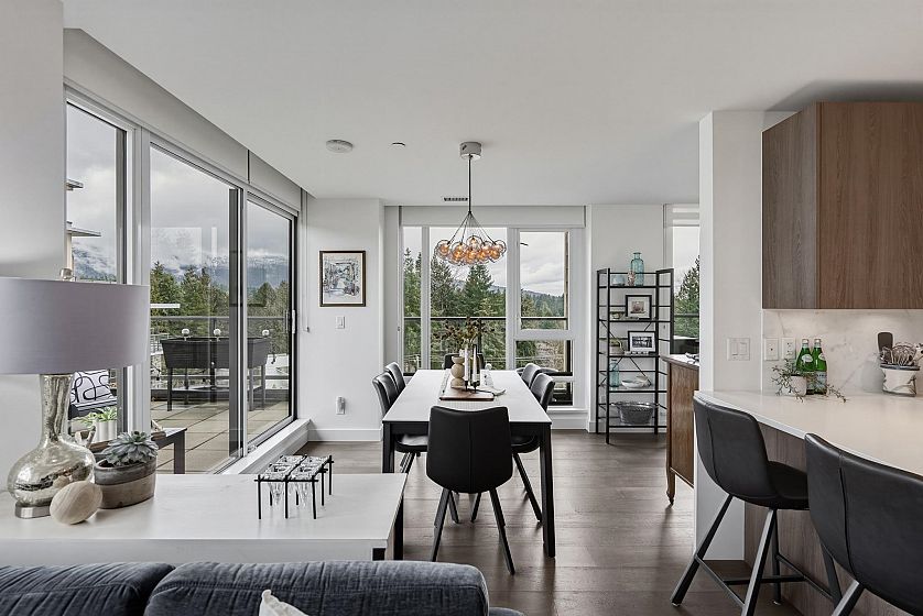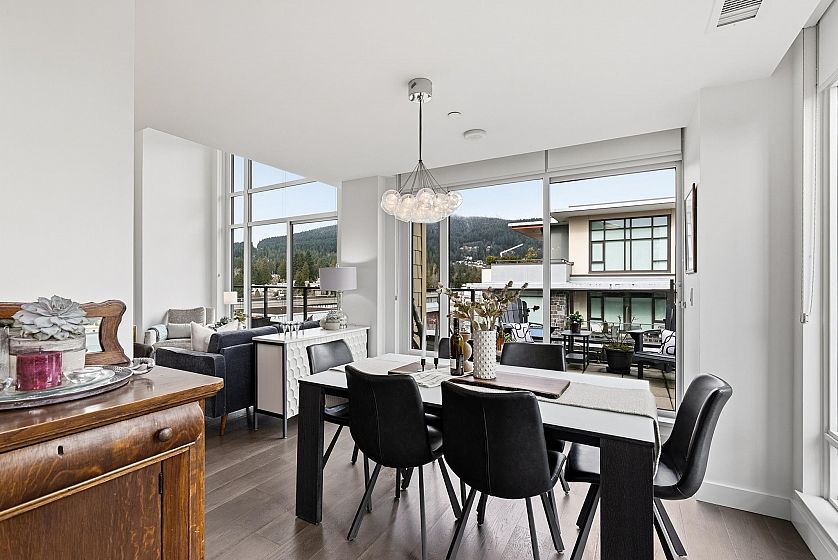 Wrapped in glass and morning light, this rare 5th floor corner home offers an effortlessly adaptable floorplan—equally suited to growing families or those looking to simplify. Expansive northeast exposures, high ceilings and spacious living & dining areas. The generous kitchen features quartz counters and breakfast bar designed for everyday connection. Three oversized bedrooms plus flex space originally designed to accommodate a fourth bedroom—ideal for working from home or hobbies. The wraparound balcony offers indoor/outdoor living, perfect for gardening & entertaining. AC, 2 parking & 2 lockers for practical comfort and convenience. The Residences are the heart of Lynn Valley Village, just minutes to schools, parks & forest trails. A home designed to adapt beautifully to every chapter.