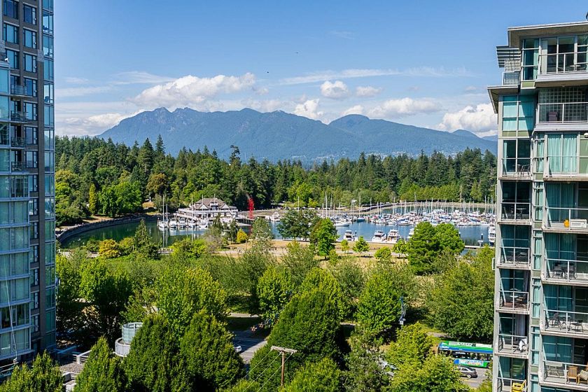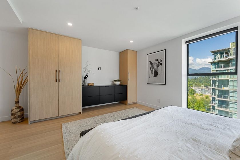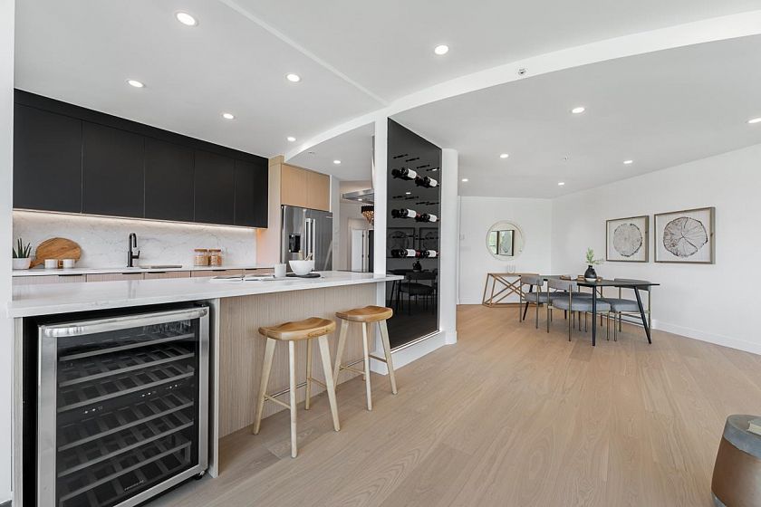 PARKSIDE LIVING - FULLY REDESIGNED & MODERN 3 BED/2 BATH ULTRA LUXURY apartment steps to STANLEY PARK. This ELEGANT and FUNCTIONAL home enjoys SWEEPING OCEAN/MOUNTAIN/CITY SKYLINE VIEWS, a sensational DESIGNER KITCHEN with an entertainment sized island & European appliances, beautiful countertops, custom cabinetry, gorgeous engineered hardwood throughout and outdoor space overlooking the city & marina. Enjoy a spacious and inviting living space featuring stunning curved glass windows with spectacular views and an adjacent dining area, perfect for entertaining! Ideally located on a quiet tree-lined street, walking distance to the Stanley Park seawall, world-class restaurants, shopping, & transportation. Building amenities: indoor pool, gym, lounge + games room. 2 parking + locker.