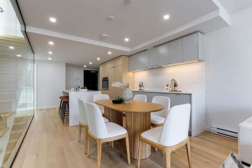 NEW PRICE! Awesome 3 bed & 2.5 bath VIEW PENTHOUSE - MASSIVE ROOF TOP DECK, 9’ ceilings & full-height windows plus walk out patios. The kitchens are a chef's paradise, stunning white oak and white lacquer cabinets, quartz countertops, under-mounted sinks, no-touch faucet, seamless Liebherr fridge, AEG European wall over & induction cooktop and Fisher & Paykel dishwasher. Rift-cut white oak floors throughout. The bathrooms feature wall-mounted vanity and Silestone Calacatta quartz countertops, Italian stone vanity, LED-lighting, rain & hand shower. Great bedrooms. 1 underground Parking and 1 Storage Locker. Common outdoor courtyard garden. COURT ORDER SALE. OPEN HOUSE (SUN) March 15, 2-4pm. COURT ORDER SALE.