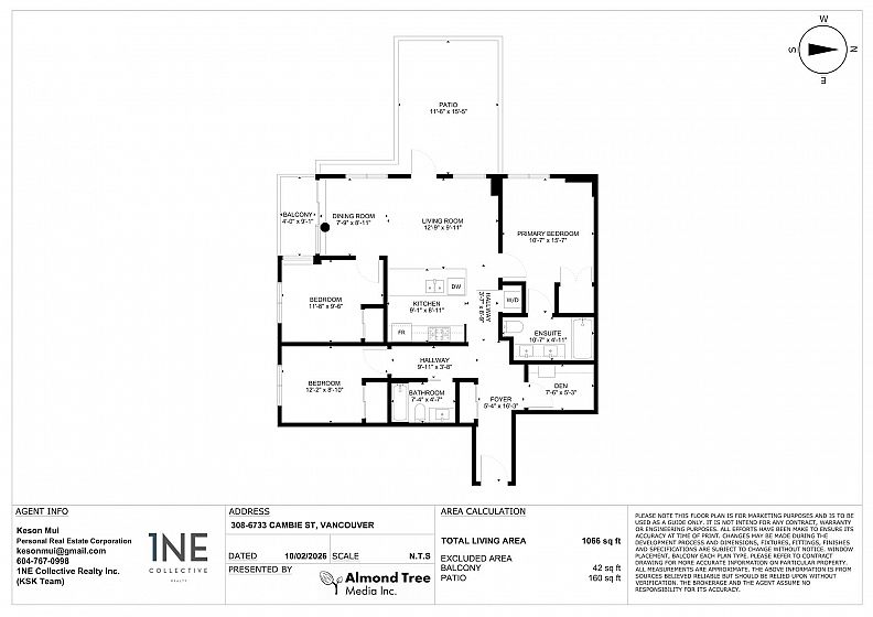 THE CAMELLIA located at Prime Cambie Corridor, steps away from Langara 49th Sky station, Langara Colege, Oakridge Centere, Golf Court, Annie B Jamieson Elementary and Sir Winston Churchill Secondary. This 3 bed plus Den corner unit features 10 ft ceiling, top brand appliances with modern kitchen design, central geothermal heating and ac, best yet this unit is facing away from Cambie with a huge180 sq ft private roof top patio and 2 side by side parking (one already installed an level 2 EV charger), a large locker is also included.