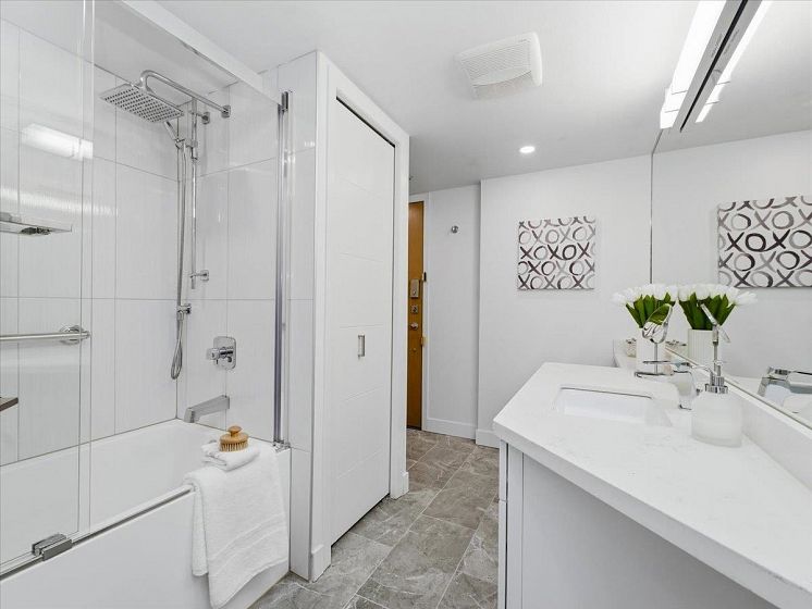 Spacious 3-bedroom, 3-bathroom, Office & Den OCEANVIEW Residence set over 2 levels and spans over 1900 sq ft and feels like a house. Substantially renovated featuring a bright open-concept living area designed to showcase the impressive outlook. The upper level offers three oversized bedrooms,(2 with walk-in closets) including a stunning primary suite with spa-inspired ensuite. The main level boasts a beautifully updated kitchen, premium appliances, cozy new fireplace, updated flooring, home office and modern renovated bathrooms. Enjoy SPECTACULAR SUNSETS from either balcony or the ROOFTOP Patio. Ample building amenities including bike room, sauna, gym, patio, library and literally front door access to the Seabus and Vibrant LoLo. Includes 2 parking and an XL storage. Sun March 22, 2-4pm.