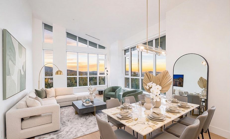 Parkside by Mosaic, the prime south-facing Penthouse, with world-class amenities! This 3-bedroom plus office residence features soaring vaulted ceilings and expansive windows, filling the space with natural light and showcasing breathtaking city and water views. Designed for style and functionality, it includes a spacious sun deck, a private double-car garage with an EV charger, a third parking stall, and a 120sqft private concrete storage room. High-end finishes include a Miele appliance package, and quality craftsmanship enhance every detail. Set near Lynn Canyon, with easy access to shopping, hiking and biking trails, and the newly opened Amenities Building, which includes a pool, gym, sauna, steam room, meeting rooms and gathering spaces! The last and best Penthouse - don't miss it!