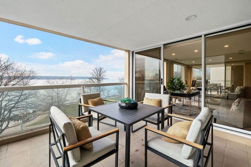 Rare opportunity to own a spectacular sub-penthouse corner residence overlooking English Bay, with unobstructed ocean and beach views. This spacious 2,200 sq.ft. 3 bedroom, 2 bathroom home offers bright southwest exposure and an expansive single-level layout filled with natural light. Enjoy indoor-outdoor living with a large all-season terrace perfectly positioned to capture sunsets and the vibrant waterfront setting. Extensively renovated with over $300,000 in upgrades in the past three years, including radiant in-floor heating, new flooring and high-end stainless steel appliances. Elegant finishes such as Versace tiles throughout.This boutique building offers exceptional privacy with only 9 residences and a maximum of two suites per floor. Easy to show.