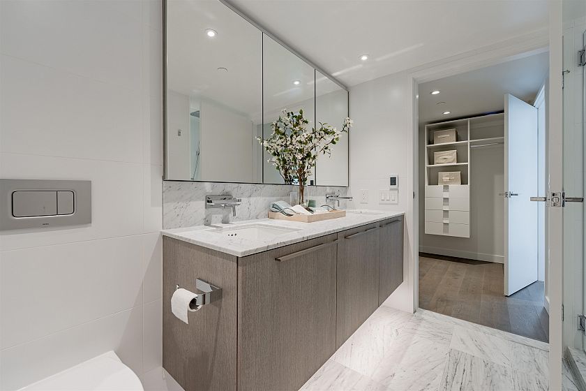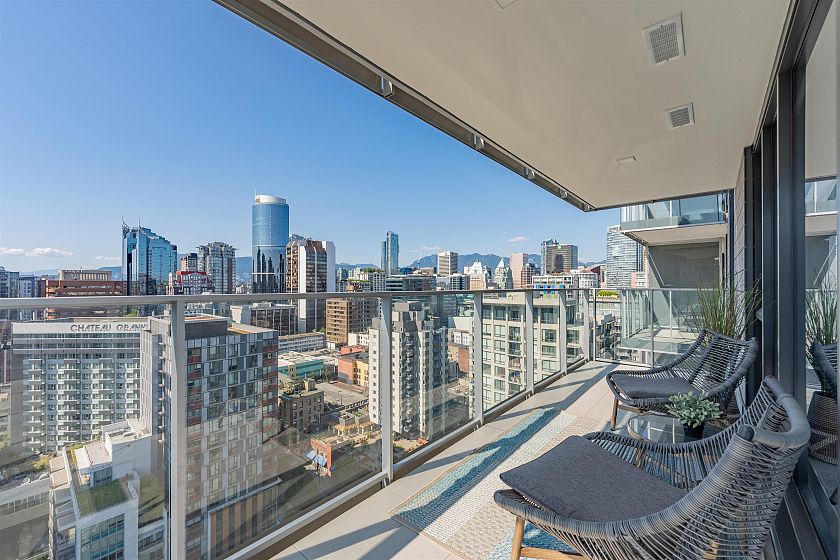 Prestigious Yaletown location at 8X On The Park! The most desirable floor plan w/wrap around balcony (SW exposure) overlooking Emery Barnes Park, city & some water views! This sky-home comes w/smart tech such as Nuheat radiant flr heating & cooling, dimmable lights & smart learning thermostats. Stunning kitchen includes Miele appliances, Italian cabinets & full slab marble backsplash. Flawless bathrooms boast marble floors w/ in-floor heating. Amenities incl 24 hr concierge & access to SKY LOUNGE equipped w/ Sky Fitness Centre, Yoga Room, lounge w/ full kitchen & entertainment area & outdoor rooftop patio w/ loungers & BBQ terrace. Incl 2 parking stalls, storage locker & bike storage. OFFER DATE: April 22 5 PM.