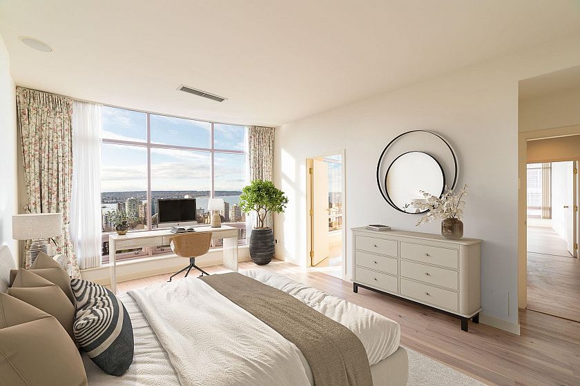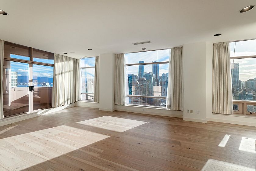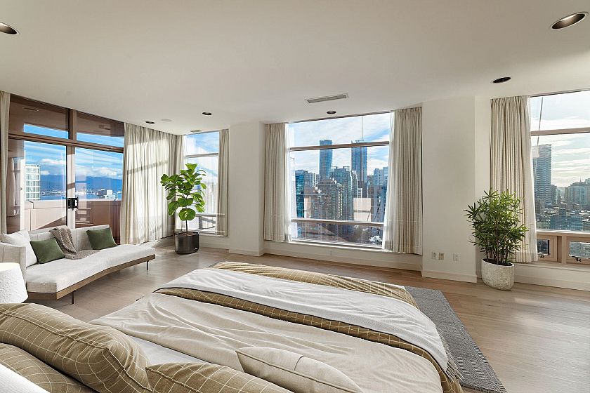 Spectacular views of Coal Harbour, Stanley Park, North Shore Mountains, English Bay, & city from this house-sized residence offering over 4,300 sq ft w/ 4 bedrooms & 5 bathrooms, boasting sweeping panoramic views. This home offers exceptional privacy & a true “home in the sky” feel, ready for your personal touch. Exclusive use of the entire floor opens directly into updated engineered hardwood flooring throughout & floor-to-ceiling windows spanning 18 ft, filling the home w/ natural light. The principal rooms showcase ocean, harbour, & mountain views, complemented by 4 private balconies. Incl 5 parking stalls, 1 storage room, 24hr concierge, 3-storey lobby, fitness centre, club room, & resident gardens. Steps to Robson Street, dining, shopping, Coal Harbour Marina, Seawall, & Stanley Park.