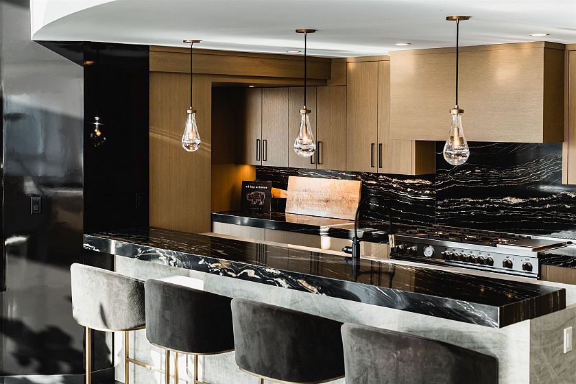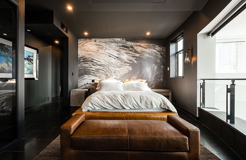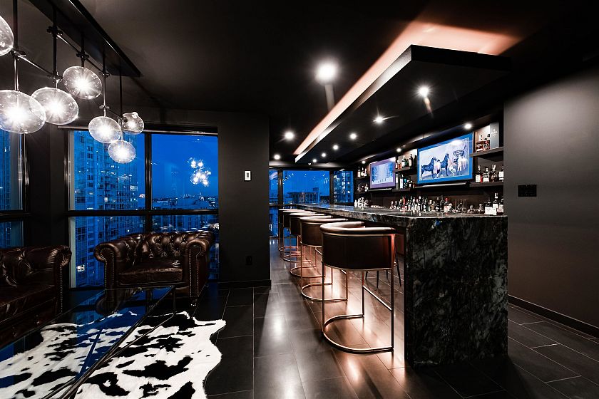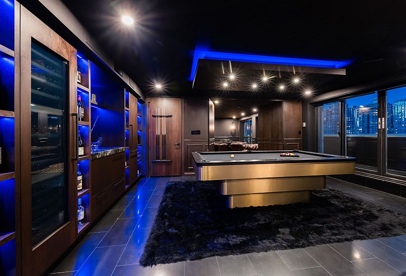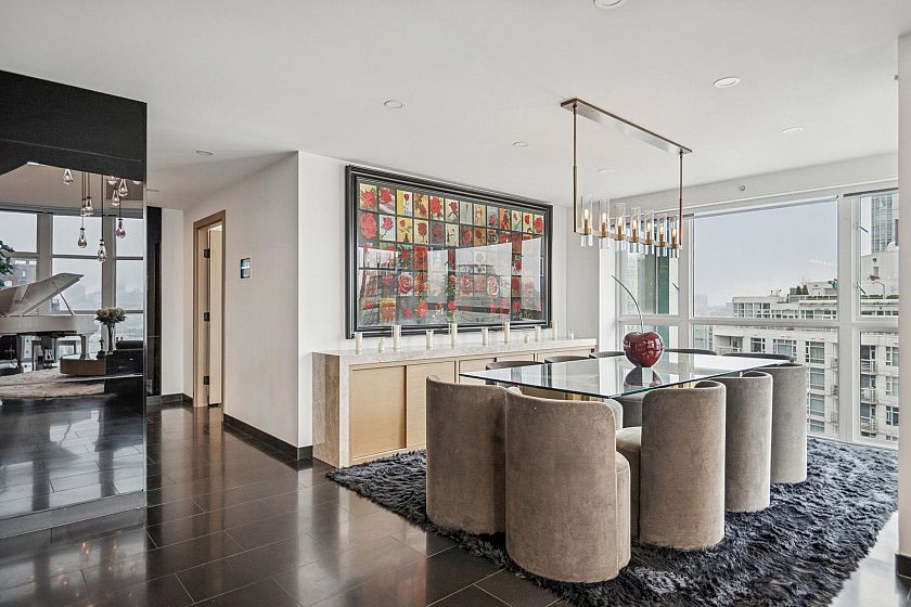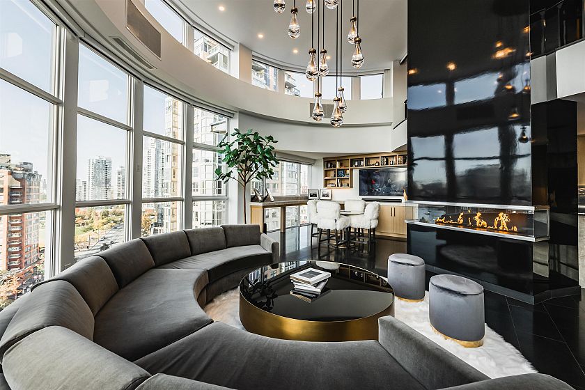 An award winning penthouse offering exceptional privacy, flexibility, and architectural distinction. This beautifully updated two storey residence spans 4,200 sq.ft., with expansive south and west facing windows framing breathtaking marina and city views from every room. A recipient of both the Georgie and HAVAN Awards, the home is currently configured as a four bedroom, three bathroom residence. The primary retreat opens onto a spectacular 500 sq.ft. terrace complete with a built-in BBQ and fire table ideal for seamless indoor outdoor living. Designed for both entertaining and everyday comfort, the home features a chef’s kitchen with new appliances and a living plant wall, a custom wet bar, and a dedicated billiards and recreation room. Includes five parking stalls and two storage lock