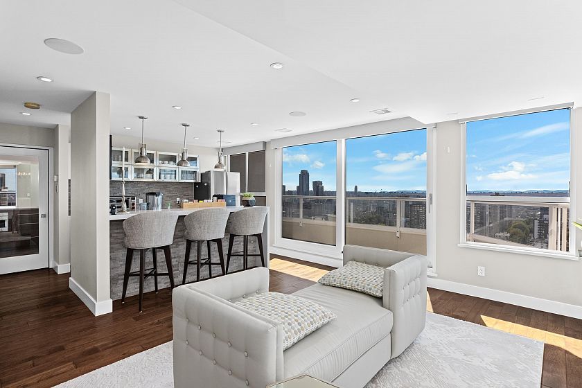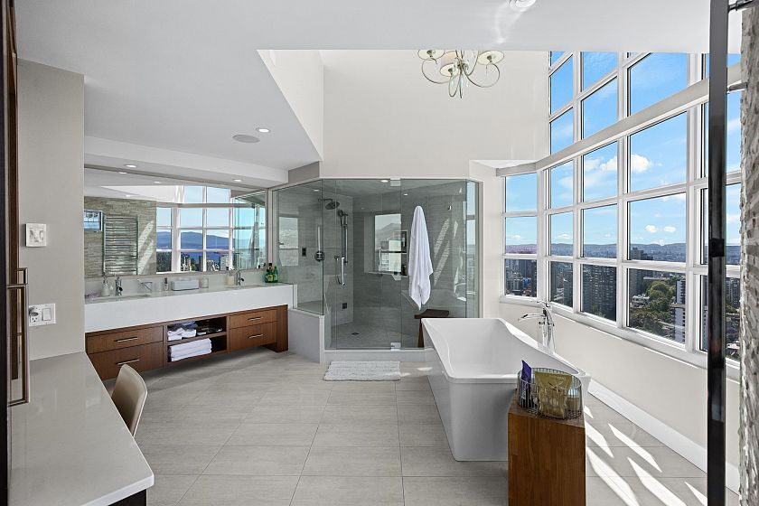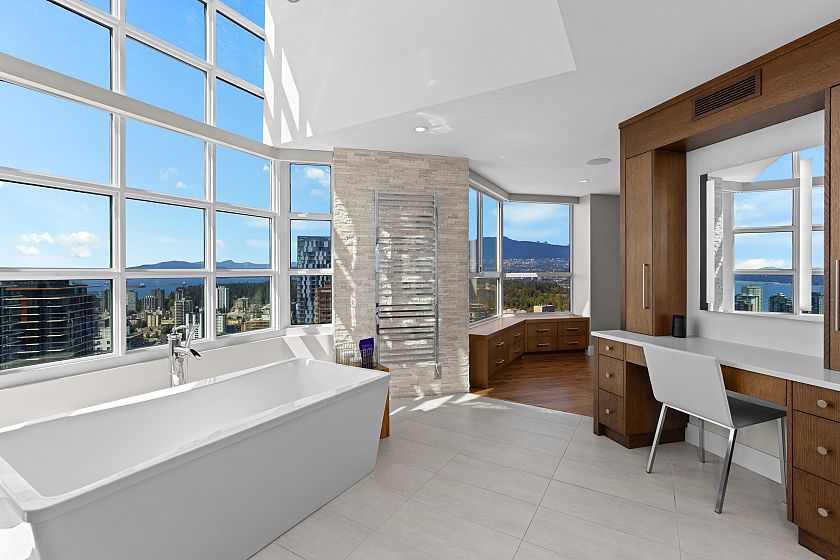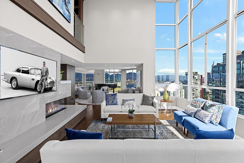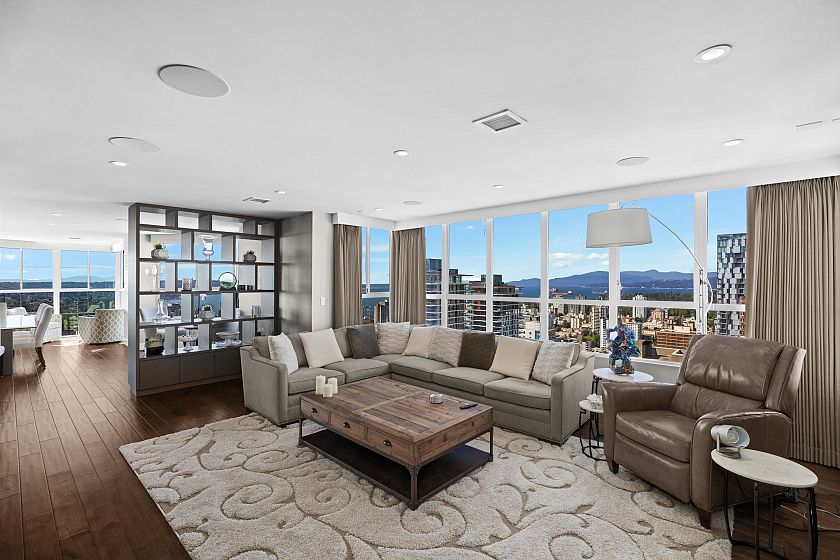 A complete family home in the sky, with 360 degree views of all the city has to offer! This 9,186 SqFt perch above it all has two full floors segregated perfectly for entertaining & winding down. Upstairs provides 5 generously sized Bedrooms all ensuited + a total of 9 Baths throughout. 4 patios providing indoor/outdoor living options to the North & Southern open views. With a glass atrium at each corner of the home, natural sunlight throughout the day is never a problem. You have a grand entertainers chef kitchen & oversized 6-top island leading to the expansive living & dining areas + piano lounge & library. This main floor can host any size event, from a cozy movie night with family to Christmas parties with everyone you know. With full automation, steam showers & Gym, #3101 has it all!