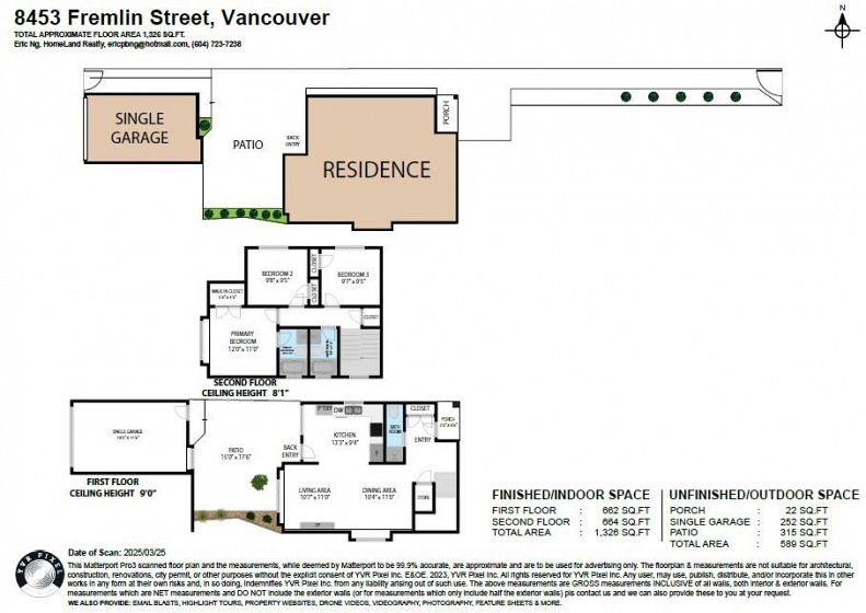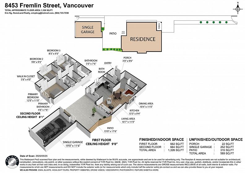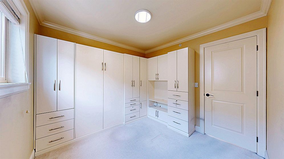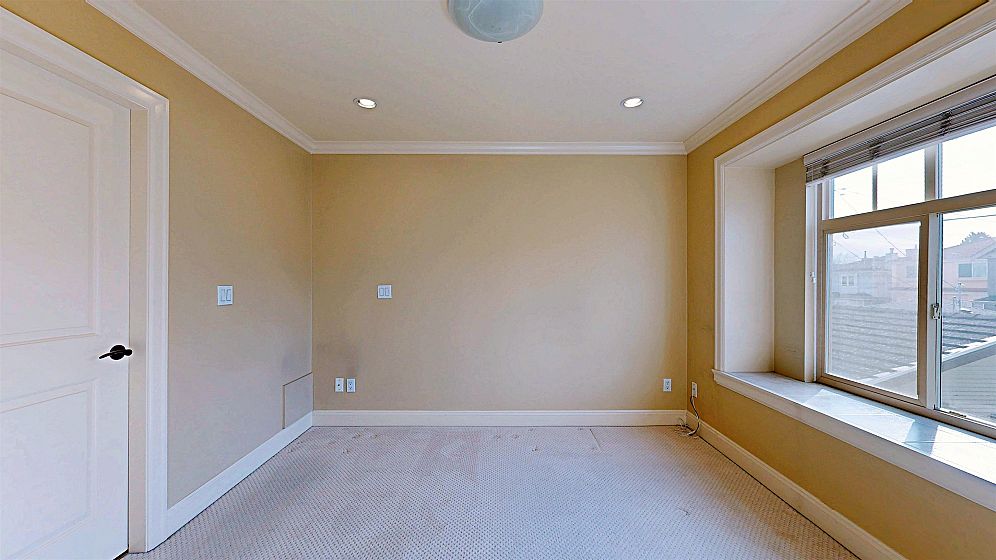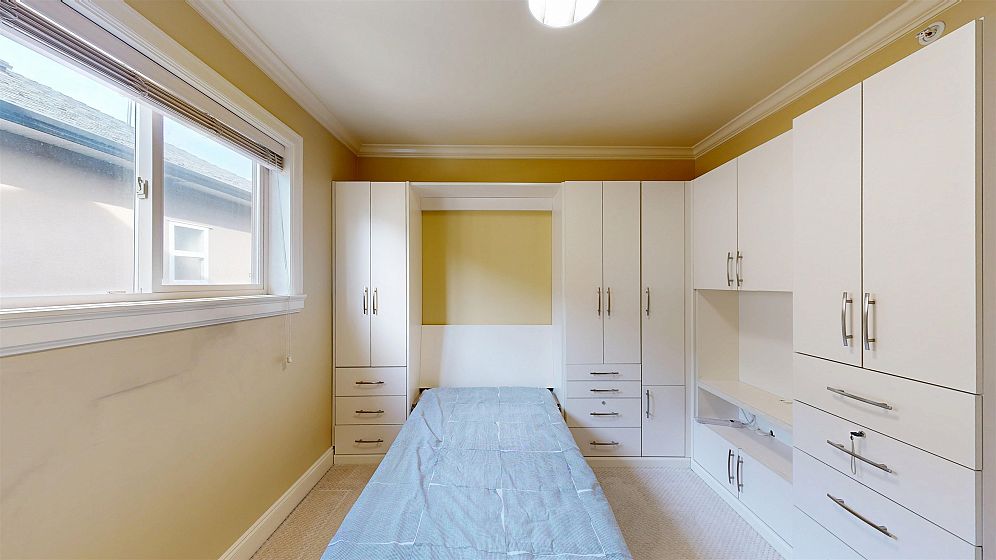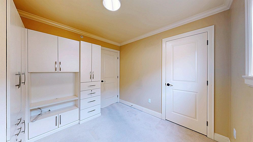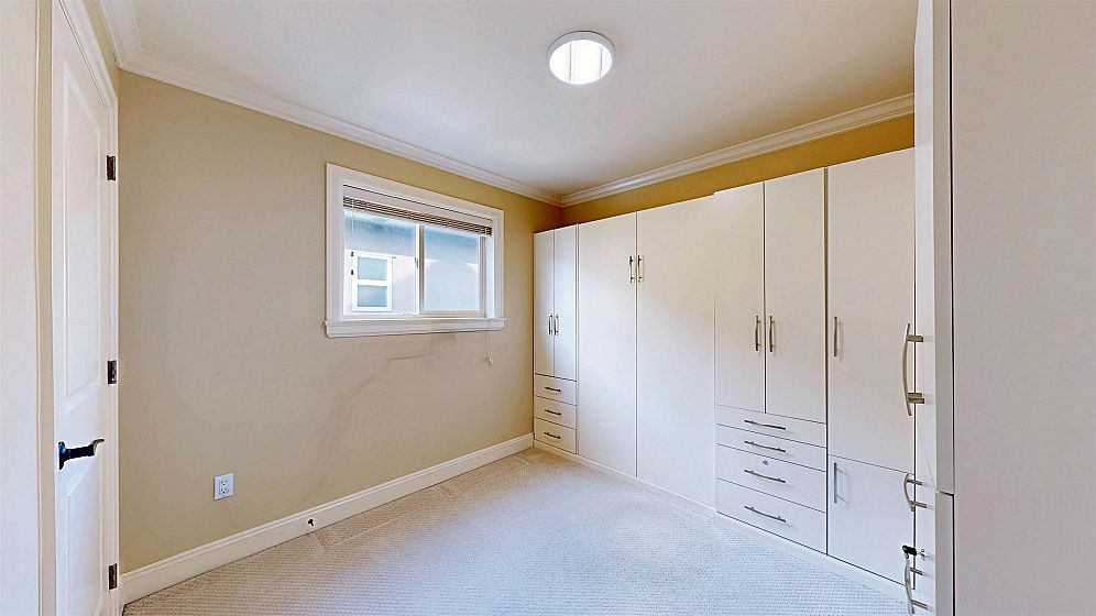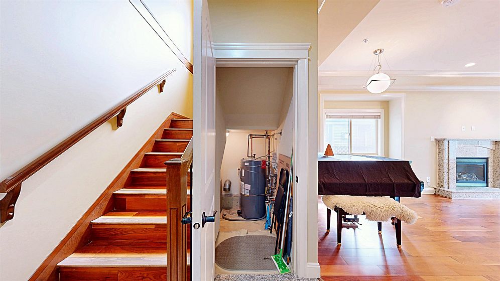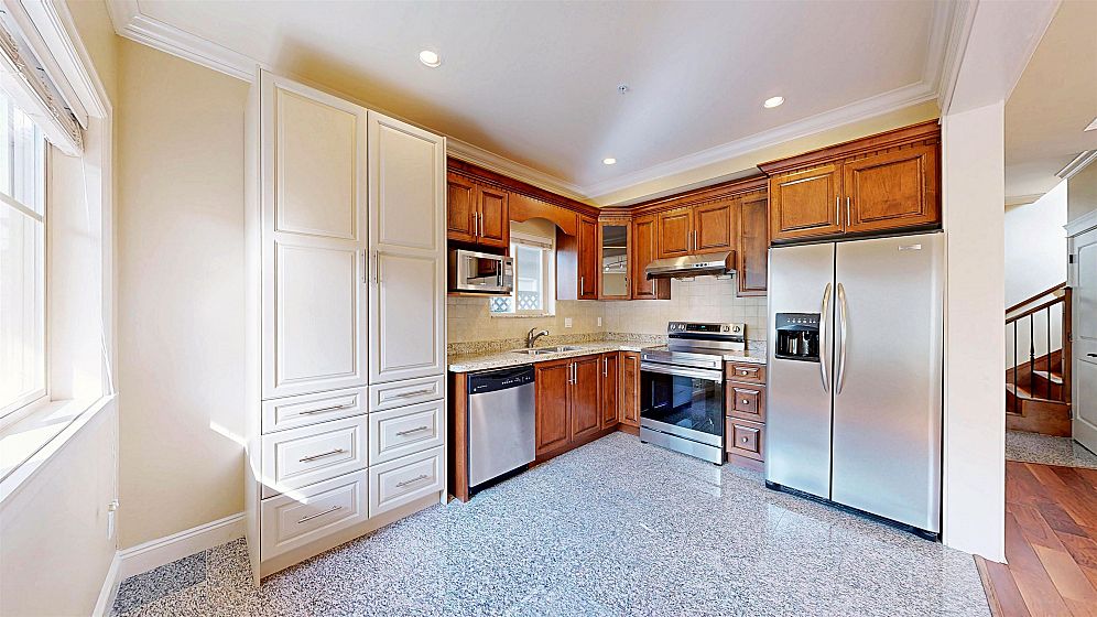 Exceptional value in this quiet, bright, well-kept stunning 1/2 duplex back unit in a highly sought-after neighborhood. This luxury residence offers a garage and a private, spacious garden patio for outdoor enjoyment. Spanning over 1,300 SF across two levels, this beautifully designed home features bright and comfy 3 beds and 3 baths, 9' ceilings on the main floor, open kitchen, dining and living area with granite counters, fireplace, ample cabinetry for storage, granite and wood flooring, and quiet radiant heat. Includes a custom Murphy bed with wardrobe and worktable. Newer appliances. Steps to Marine Gateway, shopping, restaurants, and Marpole Community Center, Canada Line and public transit. Located in the Laurier Elementary and Churchill Secondary catchments. Measurement approximate.