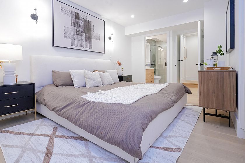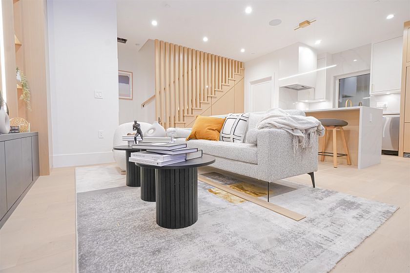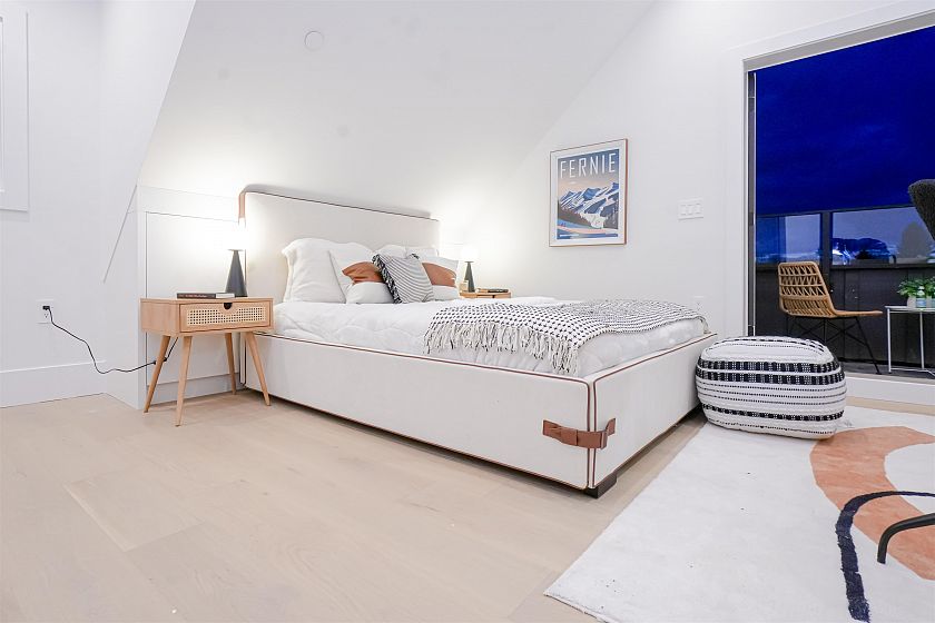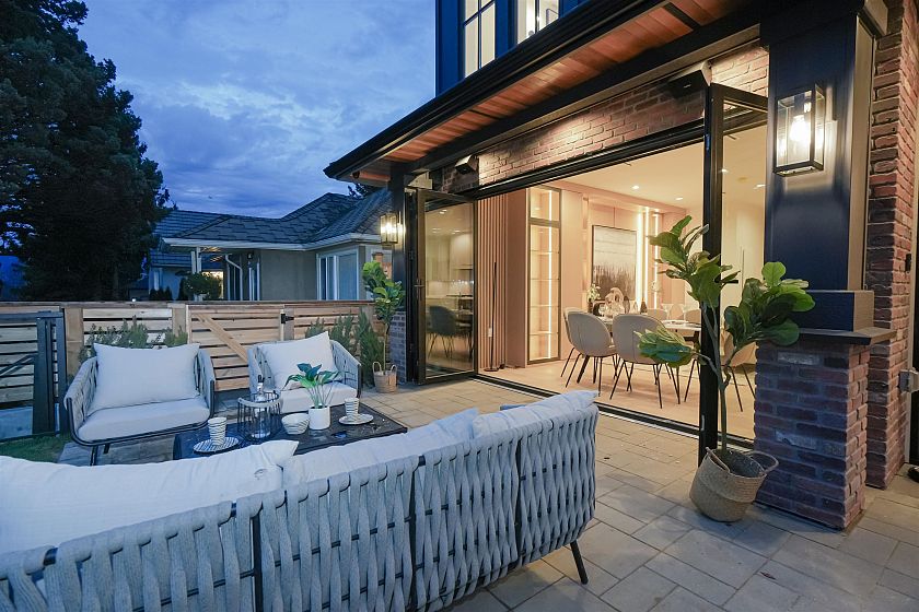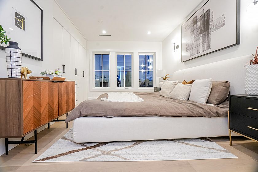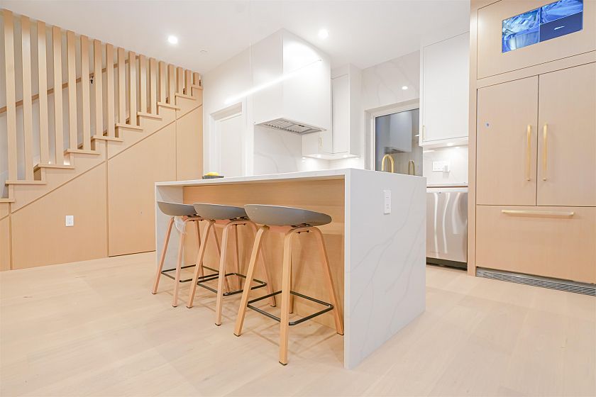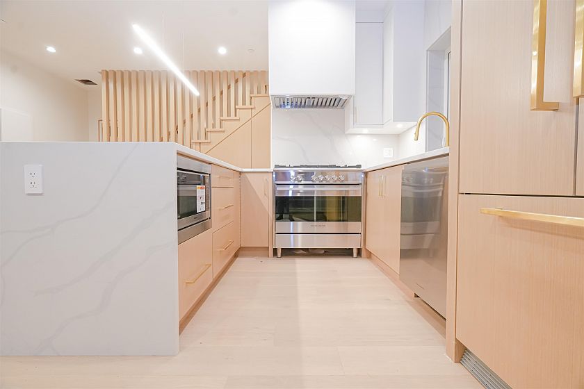 Luxurious front-unit duplex by Encore Collection in East Vancouver with stunning downtown views. Offering stunning downtown views, this home showcases high-end exterior finishes, blending Hardie, Brick, and Norwegian Fluted siding, this 3-bed, 3.5-bath home offers an open-concept main floor, gourmet kitchen with Fisher & Paykel appliances, and sleek stone countertops. Two second-floor primary bedrooms include private ensuites, while the top-floor third bedroom offers a tranquil retreat. Additional highlights incliude air conditioning, white oak hardwood floors, custom cabinetry, CCTV, alarm system, 12' accordion patio door, and private garage. Close to parks, schools, transit, shopping, and dining.