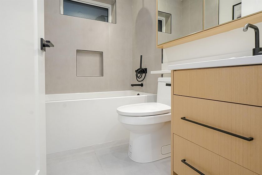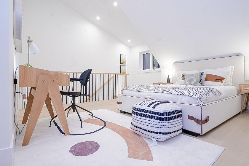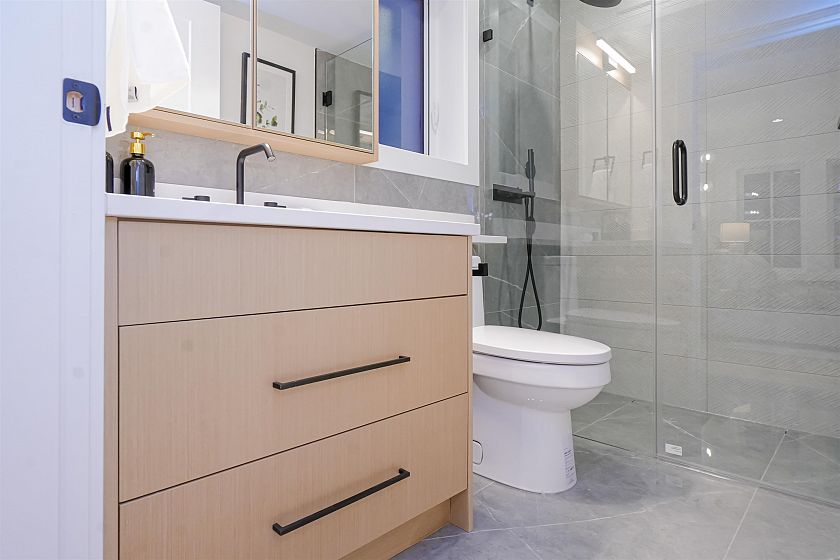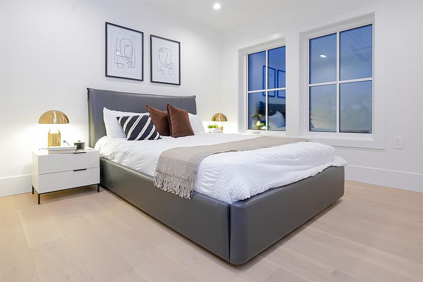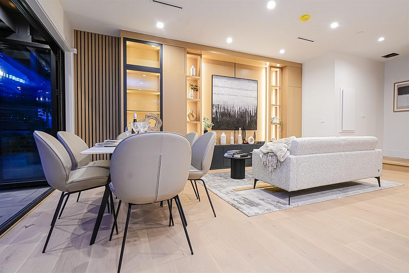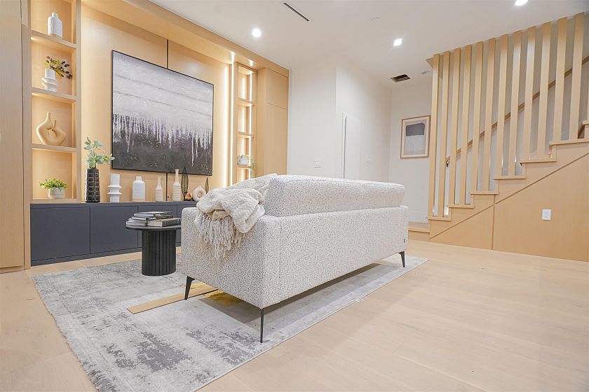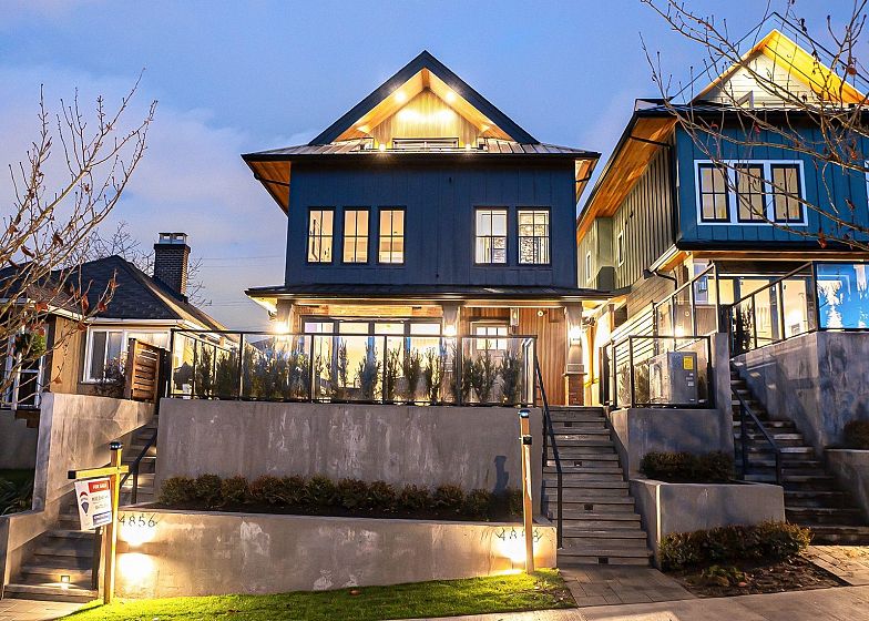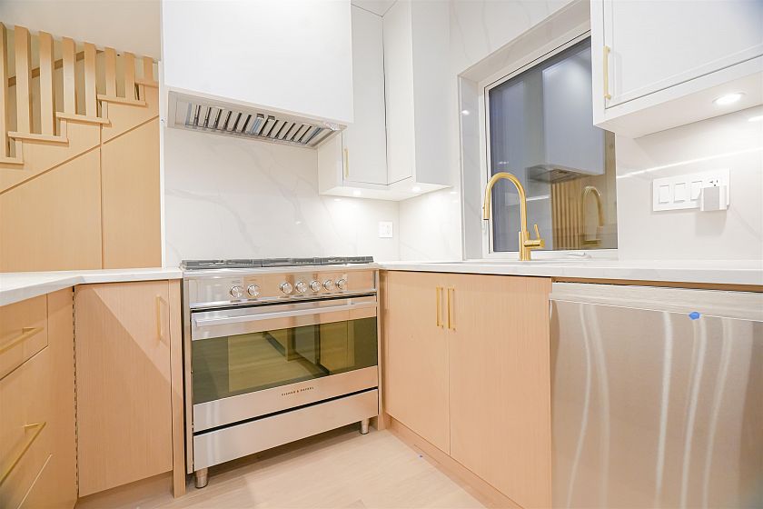 Luxurious front-unit duplex by Encore Collection in East Vancouver with stunning downtown views. Offering stunning downtown views, this home showcases high-end exterior finishes, blending Hardie, Brick, and Norwegian Fluted siding, this 3-bed, 3.5-bath home offers an open-concept main floor, gourmet kitchen with Fisher & Paykel appliances, and sleek stone countertops. Two second-floor primary bedrooms include private ensuites, while the top-floor third bedroom offers a tranquil retreat. Additional highlights incliude air conditioning, white oak hardwood floors, custom cabinetry, CCTV, alarm system, 12' accordion patio door, and private garage. Close to parks, schools, transit, shopping, and dining.