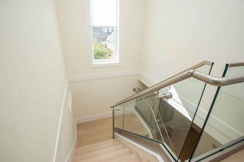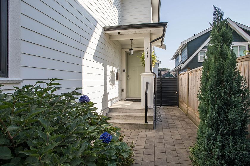 Nestled between the urban conveniences of Central Lonsdale and the serenity of Ray Perrault Park and Grand Boulevard, this custom-built half duplex offers the best of both worlds. Spanning two levels, it features soaring ceilings, hardwood floors, A/C, a cozy fireplace, and an expansive crawl space. The bright kitchen with large island, stone counters, and high-end appliances flows seamlessly into the sunlit dining and living areas. Upstairs, the private primary suite includes a partial skyline view, while two additional bedrooms complete the traditional family layout. Enjoy outdoor living on the south-facing deck or in the fully fenced yard. With lane access to a detached garage and a prime walkable location, this is the perfect family home—without strata fees or restrictions!