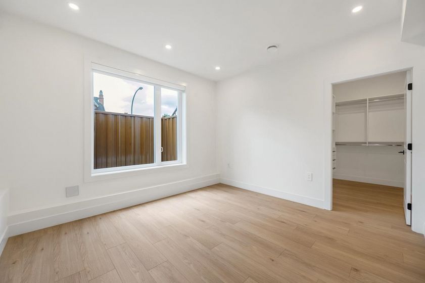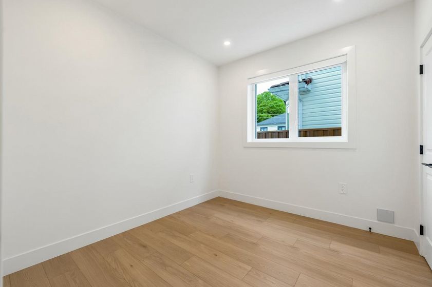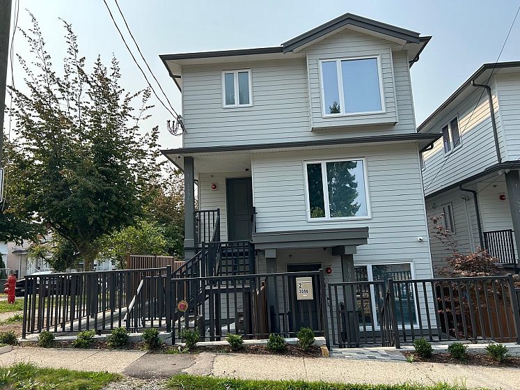 Quality built brand new ground ( garden ) level unit in a triplex setting. NO STRATA FEE. The unit comes with a bright, spacious living room, dinning room and a gourmet kitchen, plus 3 bedrooms and 2 full baths. Other features include; Air Con, HRV, heat Pump, fridge, stove, washer and dryer, dish washer security system, window coverings, EV outlet , fully landscaped and fenced. Close to Joyce and 29th Skytrain, park , school and bus. Built by a reputable builder with years of experience. Easy to Show. By appointment Only.