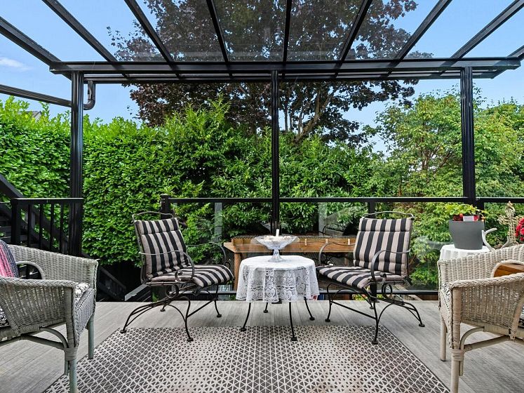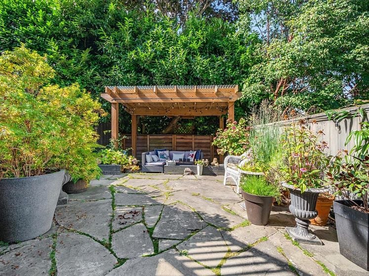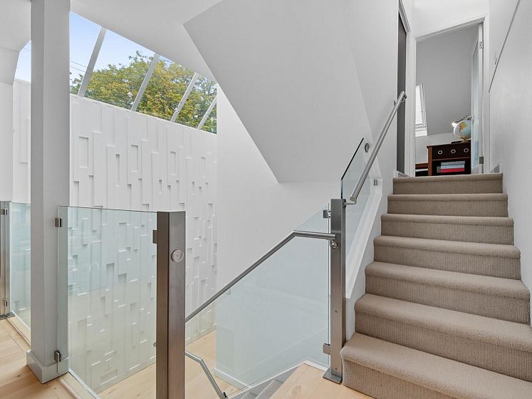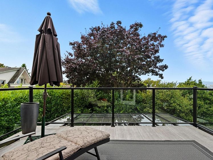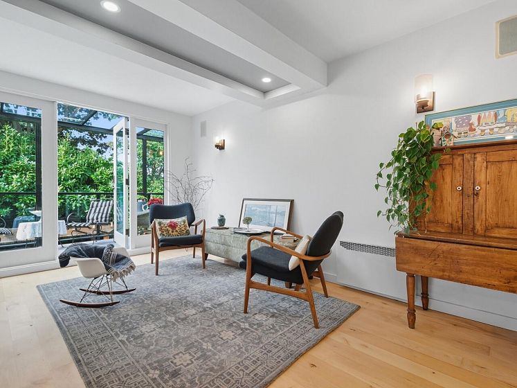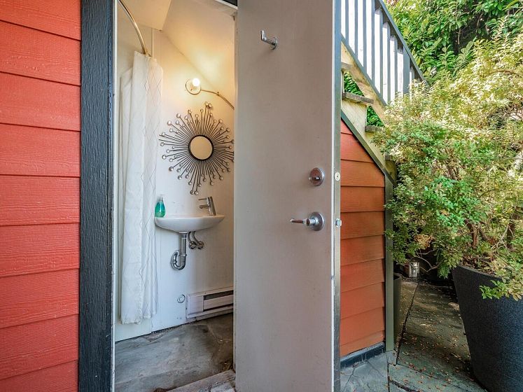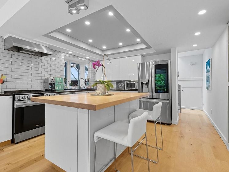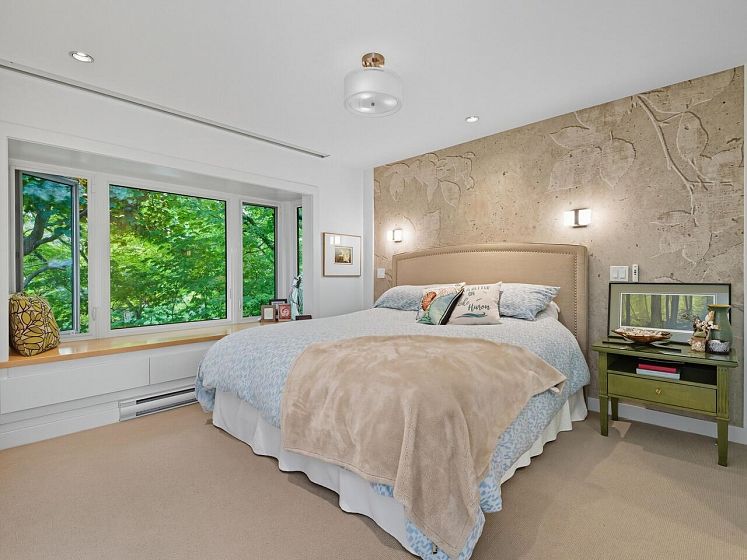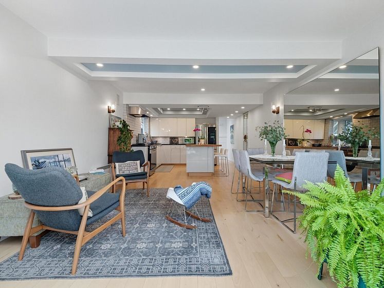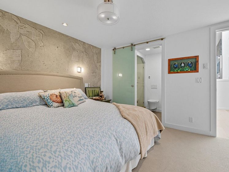 Rare offering north of 4th! This stunning 3 bed + den, 3 bath ½ duplex boasts over 1,700 sqft of light-filled living just steps to the beach, shops, cafés & restaurants. Expansive water & mountain views from the living room & private rooftop deck make this home truly one of a kind. Elegant open-concept design features stone counters, alder floors, spa-inspired baths w/heated floors & steam shower, and seamless indoor-outdoor flow with French doors to a fully fenced stone patio. The versatile den offers potential for a home business, guest suite, or income helper. Shared garage w/Tesla charger plus ample storage. Exclusive, quiet setting in one of Vancouver’s most coveted neighbourhoods—this home is a must see, offering the ultimate West Coast lifestyle.