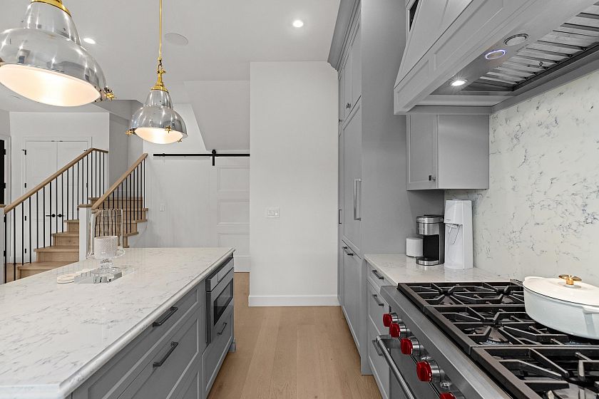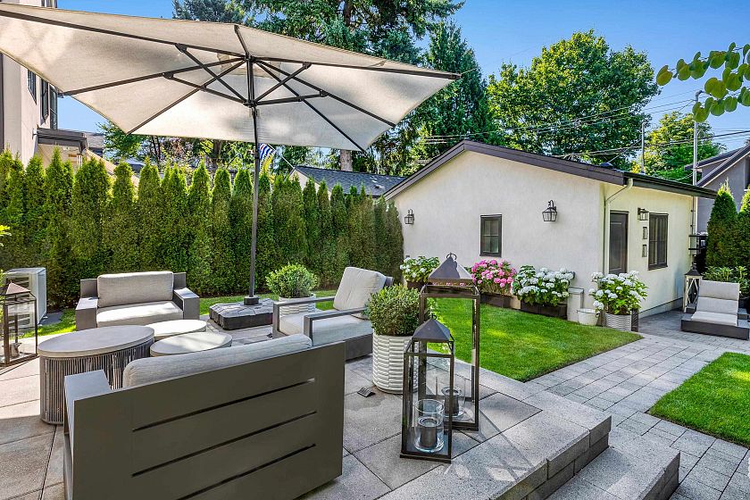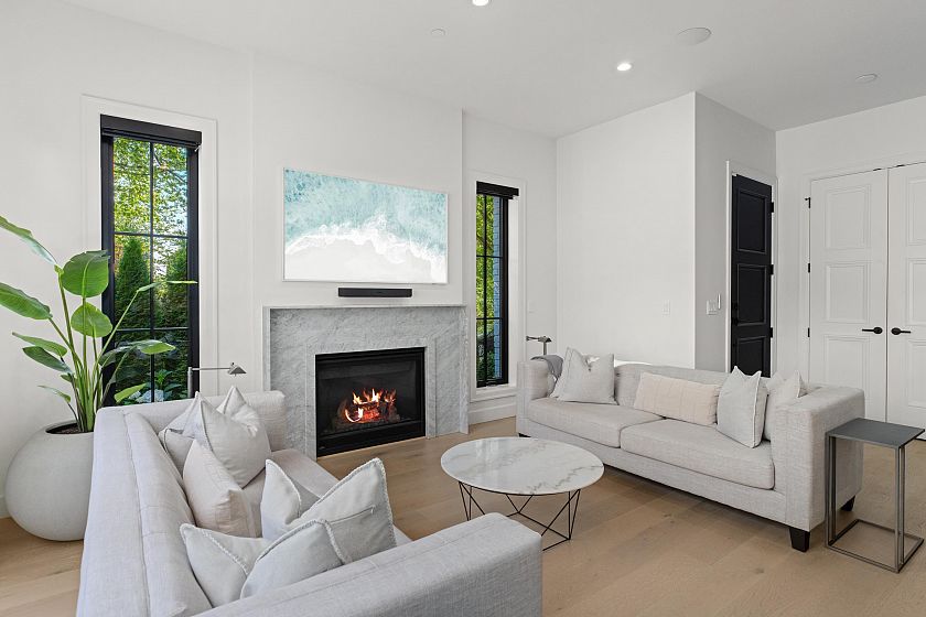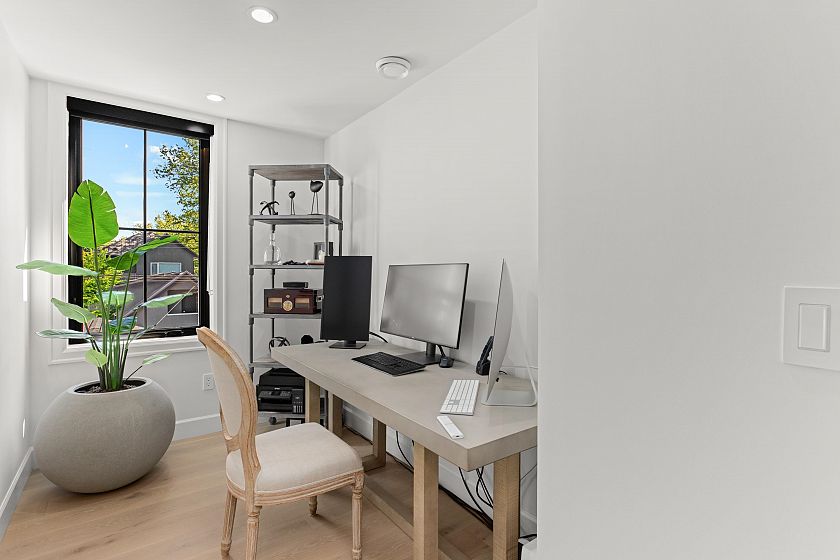 Immaculate south/west-facing back 1/2 duplex on a sunny 38' corner lot in Kits. This 3 bed + office home blends modern farmhouse style with a bright, transitional interior. Soaring ceilings and oversized windows fill the home with natural light, while a soft colour palette with black accents creates a grounded, inviting feel. The chef's kitchen features Wolf and Sub-Zero appliances, luxury quartz countertops, custom millwork, island seating, and a full pantry. A large south-facing backyard offers ideal outdoor living for families or entertaining. Additional highlights include radiant in-floor heating, air conditioning, and a detached 1-car garage. A rare offering in one of Vancouver’s most sought-after neighbourhoods.