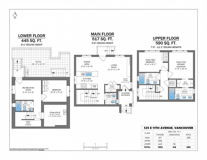 Don’t miss this beautiful, character-inspired 3-bedroom, 3.5-bathroom rear duplex in Mount Pleasant. Meticulously crafted by Kingswood Real Estate. Featuring a bright and open main floor with 9' ceilings, chef-inspired kitchen with Fisher & Paykel appliances and mill-worked cabinetry and storage. Upstairs has 2 bedrooms including a spacious primary suite with ample storage and walk-through closet. The bottom floor has a separate entrance into the recreation room with another well-appointed bedroom and full bathroom. Great potential for an in-law suite, rental or airbnb revenue. The crawlspace provides lots of storage. Stay comfortable with radiant floor heating, AC, and on-demand hot water. The fenced back outdoor space is great for kids, pets and BBQs.