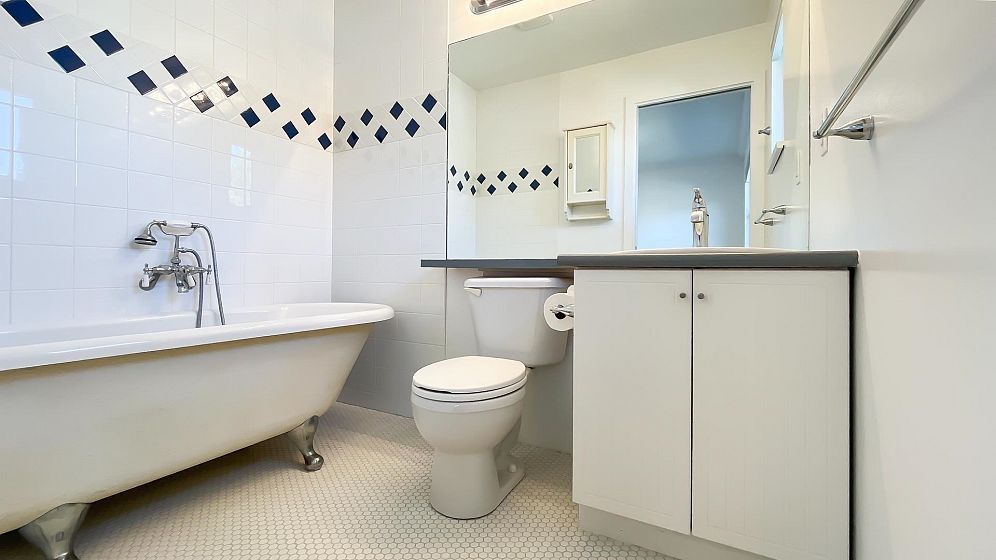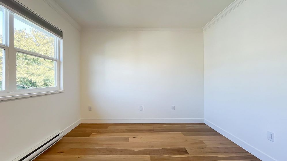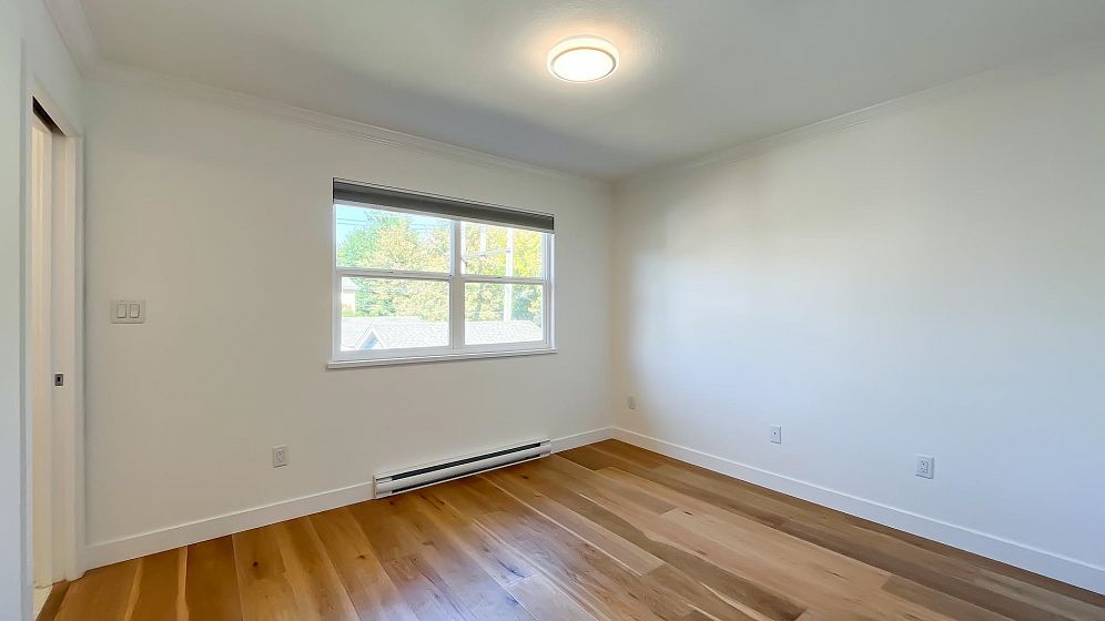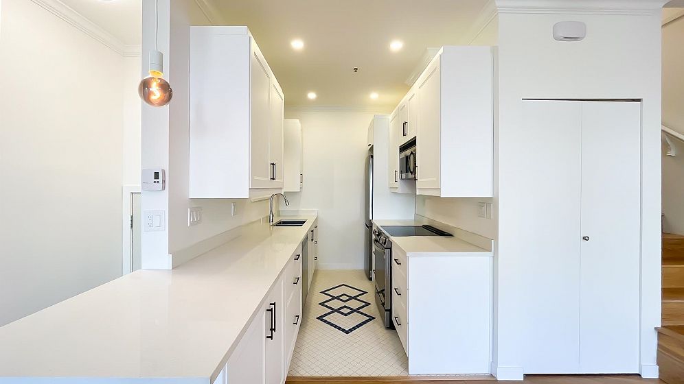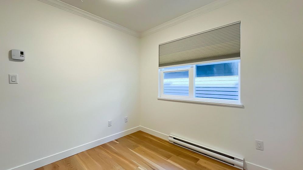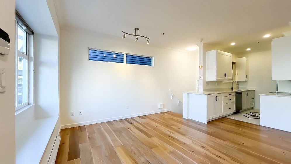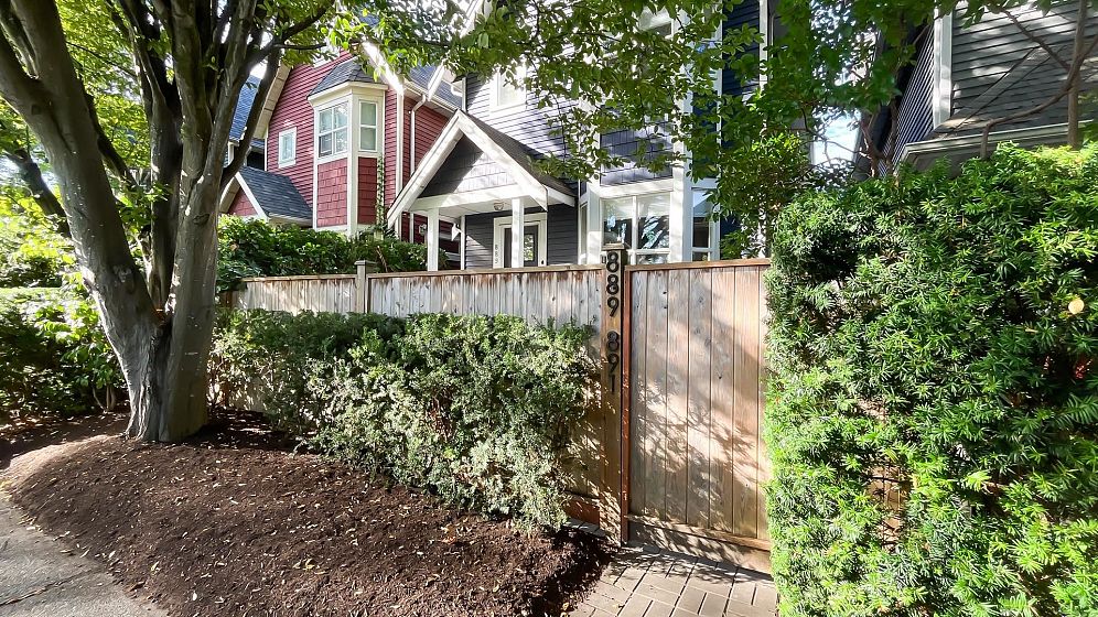 NO STRATA FEES for this 1/2 Duplex on this quiet, peaceful rear facing lot. Beautiful Oak Hardwood floors throughout, featuring french doors through to a private deck and fenced yard with garden. Great for children, pets or entertaining. 2Bed/2bath home with ensuite in master bedroom. Master features a large walk-in closet. The top floor includes a den, or 3rd bedroom, that leads to a gorgeous rooftop deck with stunning mountain views. Recently Remodeled kitchen and tastefully painted throughout. Single car garage with lane access includes lots of storage space. Only 3 blocks from the new St. Paul's hospital. This home is surrounded by parks, schools and local shops and cafes.