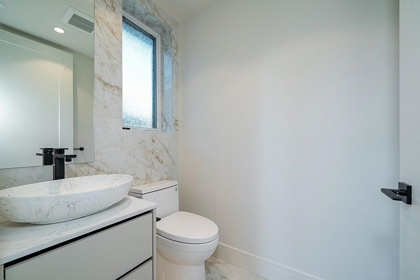 Brand new 1/2 duplex on a quiet street in prestigious Dunbar, offering over 2,600 sqft of elegant living. Features include a 2-bedroom legal suite, soaring ceilings, spacious deck overlooking the green yard, and a gourmet kitchen with top-quality S/S appliances and granite finishes. Comfort and convenience with heat pump, A/C, HRV, and security system. The basement includes a rec room with full bath, ideal as a guest suite. A Zero Emissions home with rooftop solar panels for daily energy use. In top school catchments—Lord Byng Secondary & Queen Elizabeth Elementary. Close to parks, shops, transit, UBC, and beaches. Must see!