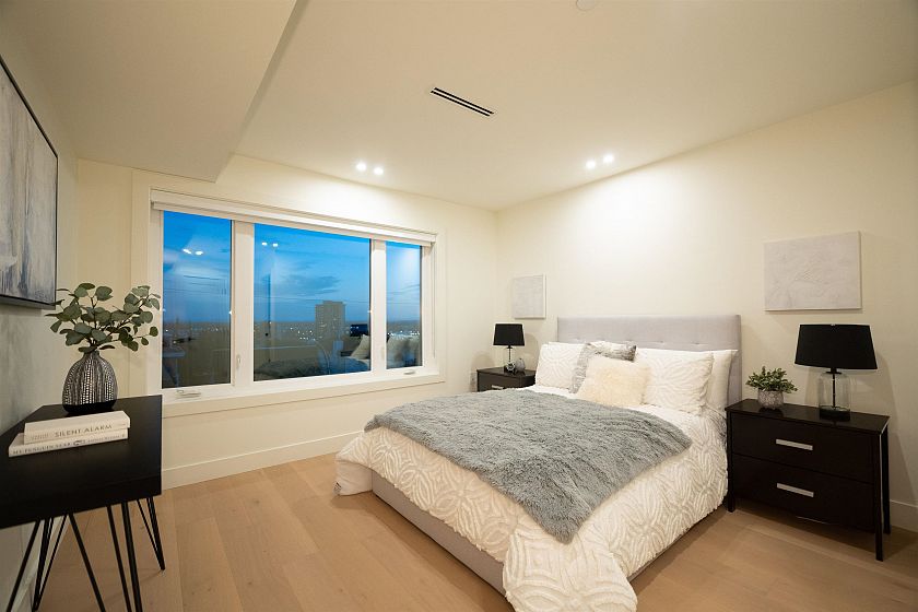 Welcome to this brand-new half duplex in desirable South Vancouver, offering over 1,500 sq. ft. of well-designed living space. Each spacious bedroom includes its own full ensuite, plus a convenient powder room for guests. Enjoy southwest views from the top-floor balcony—perfect for relaxing or entertaining. The open layout features radiant heating plus AC and a premium Fisher & Paykel appliance package, paired with elegant, high-quality finishes. A private backyard which is ideal for family gatherings, and the attached 1-car garage with EV hookup and additional parking ensures secure and convenient access. Combining modern design, comfort, and a prime location near shops, schools, and amenities, this is a rare opportunity to own a truly exceptional home.