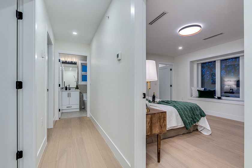 Experience modern living and exceptional functionality in this beautifully built 5-bed, 3.5-bath 1/2 duplex in a welcoming family-neighborhood. The main floor features a bright open-concept layout with a sleek kitchen equipped with premium Fisher & Paykel appliances, quartz countertops and a generous island, perfect for meal prep and gatherings. Upstairs, you'll find 3 spacious bedrooms and 2 bathrooms, including a luxurious primary suite with a spa-like en suite. The basement boasts a 2-bedroom suite, ideal for rental income or extended family. This home is complete with custom built-in wardrobes, in-floor heating, A/C , security cameras, private yard and one-car garage. Located close to schools, parks, shops, transit, restaurants, cafés, and beautiful Norquay Park.