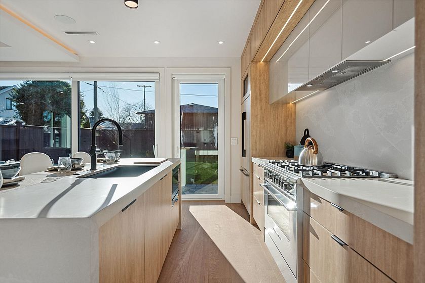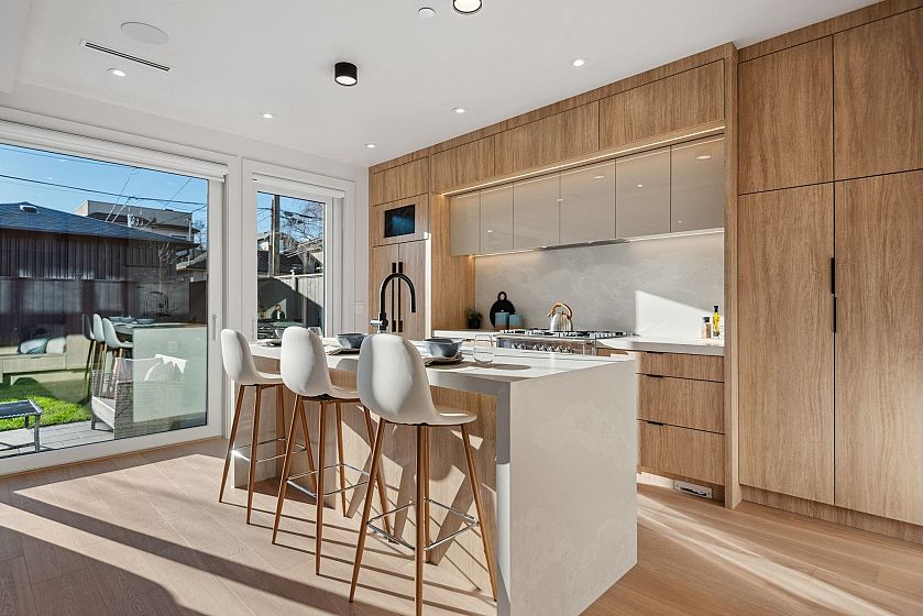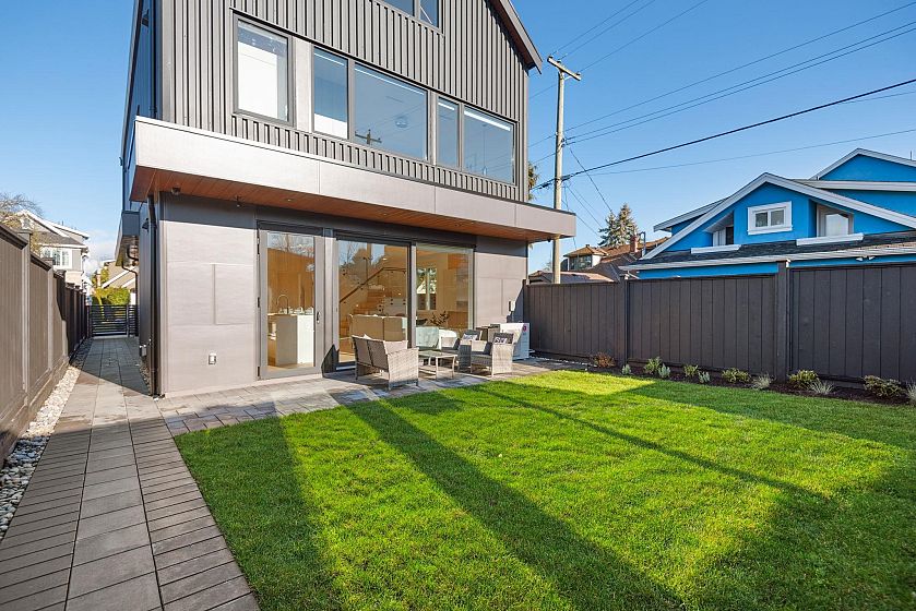 Exquisite South facing back unit ½ duplex sprawling 1,550 sq ft by Astrawest Design in the heart of Dunbar. Prepare to be impressed by the sleek modern newly completed home . The open-concept main level is perfect for entertaining and lounging. This 3 bed/3.5 bath home has two spacious bedrooms both complete with ensuites. Upstairs features 9’6ft ceilings and an Oversized custom window package overlooking your spacious fenced in private yard. Complete with air-conditioning, crawl spaces, and expansive additional storage space throughout.