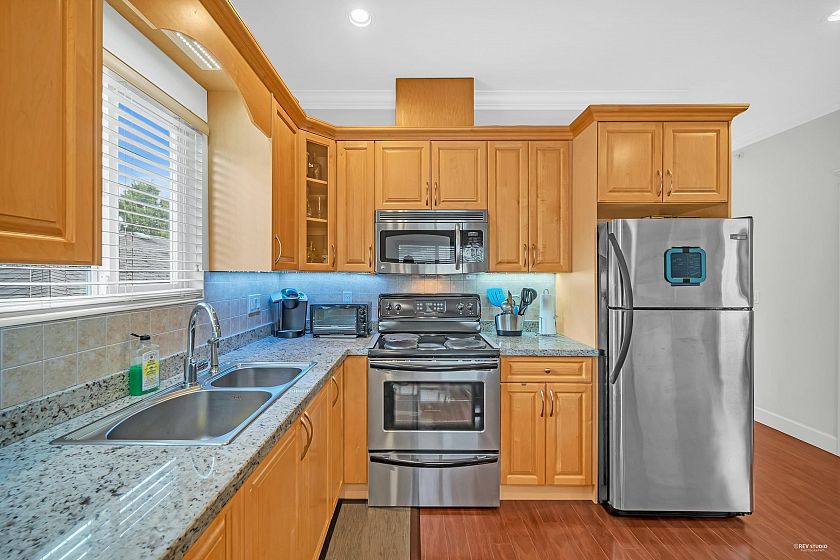 Great Value, fabulous location, well-kept half duplex in Marpole that is a 5 min walk from Marine Drive Canada Line Skytrain (easy access to YVR and downtown Vancouver) and Marine Gateway Shopping Mall, enjoy a movie at the Cineplex Cinemas or grocery shop at the T & T Supermarket. Close to Sir Wilfrid Laurier Elementary school and Sir Winston Churchill High school. Great starter home or investment property in this area. This property has 9 foot ceilings, 4 bedrooms and 3 full baths. Keep the mortgage helper or open up the space to use the whole half duplex.