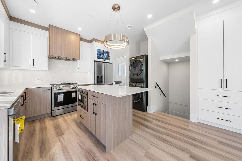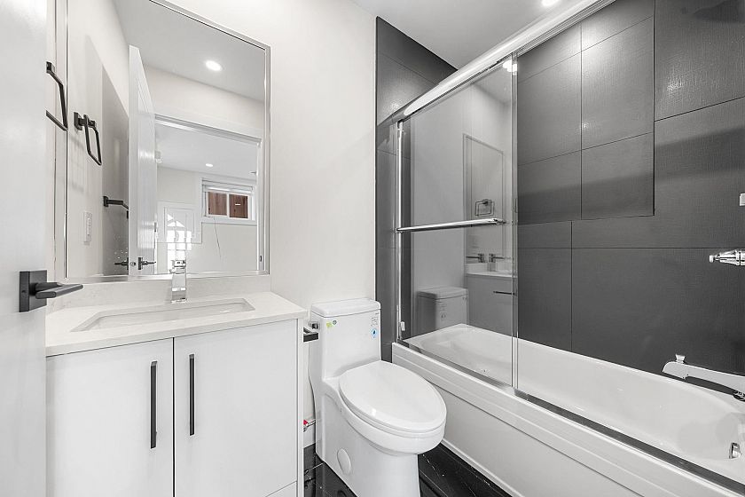 Welcome to this brand-new duplex, expertly crafted to blend modern design with everyday comfort. The main floor showcases an open-concept layout with a sleek kitchen featuring elegant countertops, a spacious dining area, and a bright living room highlighted by expansive windows. Upstairs offers three generously sized bedrooms, including a luxurious primary suite complete with a private ensuite. The lower level includes a versatile recreation room with potential to be converted into a one-bedroom suite, ideal for rental income or multi-generational living. With high ceilings, contemporary finishes, and a sought-after location, this home presents exceptional value and endless possibilities.