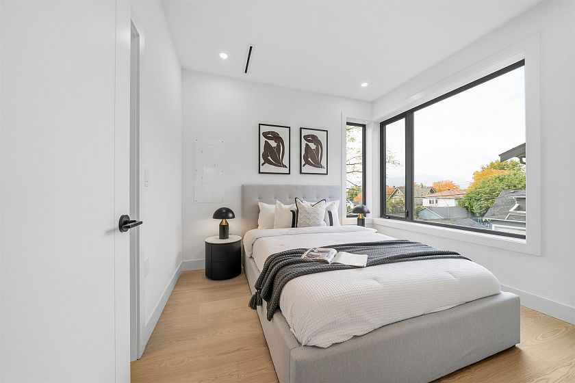 Experience modern luxury living in this stunning newly built half duplex located in desired Hastings Sunrise neighbourhood—just minutes from Downtown Vancouver and Highway 1.This beautifully designed 3-Bedroom, 4-Bath duplex offers a bright, open-concept layout, quality craftsmanship from reputable builder, and contemporary finishes throughout. The home features a top of the line appliance package, custom millwork, central AC, HRV, Heat pump, security system, EV-ready carport, and fully landscaped outdoor space perfect for family living. Take in the breathtaking North Shore mountain views from your home, with parks, schools, shopping, and transit all within easy reach. A rare blend of luxury, convenience, and family-friendly comfort in one of Vancouver’s most connected communities.