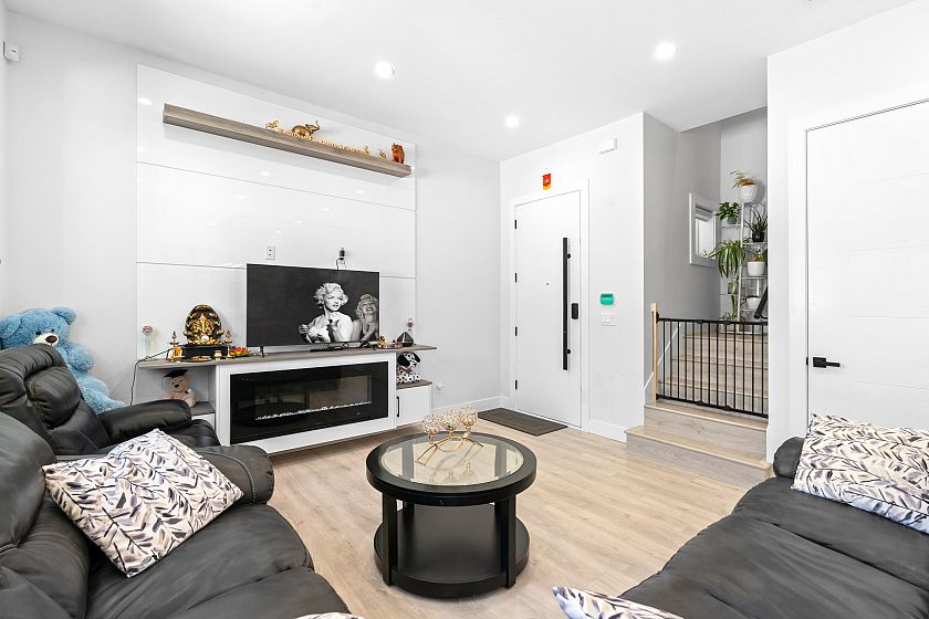 3 level back 1/2 duplex featuring the ideal floor plan with 4 Bedrooms and 4 Bathrooms. As you enter the main floor you will notice 10 foot ceiling with an open concept kitchen, living room, stainless steel appliances and a cozy fireplace. As you walk upstairs to the second floor you can enjoy the 3 bdrm 2 bath. One Bedroom downstairs with full bathroom & separate entrance. Arrive through the front secured gate into your private front yard that is ready for you to enjoy during summer! Enjoy high quality laminate flooring & security system, air conditioning, HRV & much more! Close to parks, schools and transit!