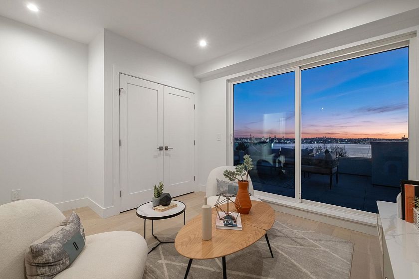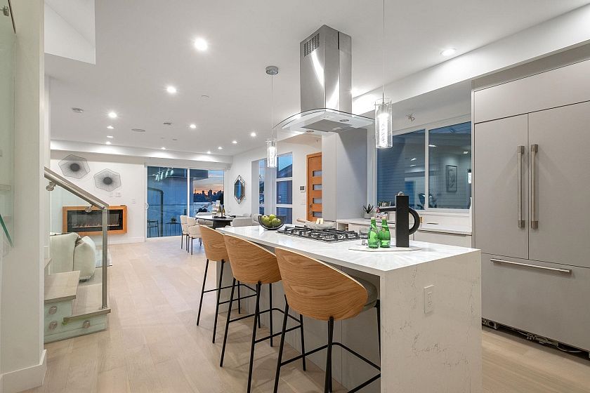 Experience luxury in this 5-bed, 5-bath, 2700 sqft home—a blend of elegance and sustainability. Radiant heating graces each floor, accompanied by downtown and water views from every room, including the 1-bed lock-off suite. A Nolte custom kitchen, Fisher & Paykel appliances, and Kohler fixtures enhance the culinary and spa-like experience. Panoramic vistas await on the double-decker rooftop and nearly 1100 sqft of outdoor space. The energy-efficient design, with an impressive Energy Guide rating of 98.5, integrates seamlessly with security systems and a high-efficiency boiler. Natural light illuminates through double-glazed windows with UV protection. This home signifies a commitment to quality, security, and sustainability. Step into a world of panoramic views, and contemporary design.