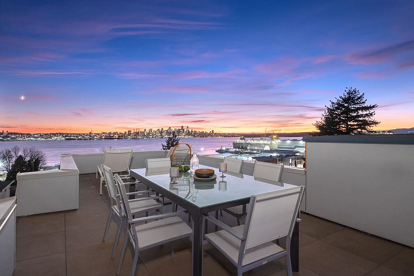 Experience luxury in this 5-bed, 5-bath, 2700 sqft home—a blend of elegance and sustainability. Radiant heating graces each floor, accompanied by downtown and water views from every room, including the 1-bed lock-off suite. A Nolte custom kitchen, Fisher & Paykel appliances, and Kohler fixtures enhance the culinary and spa-like experience. Panoramic vistas await on the double-decker rooftop and nearly 1100 sqft of outdoor space. The energy-efficient design, with an impressive Energy Guide rating of 98.5, integrates seamlessly with security systems and a high-efficiency boiler. Natural light illuminates through double-glazed windows with UV protection. This home signifies a commitment to quality, security, and sustainability. Step into a world of panoramic views, and contemporary design.