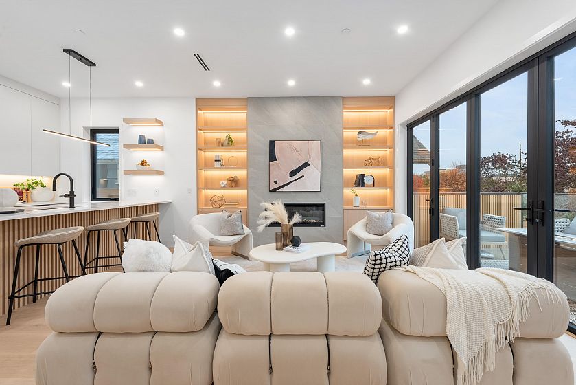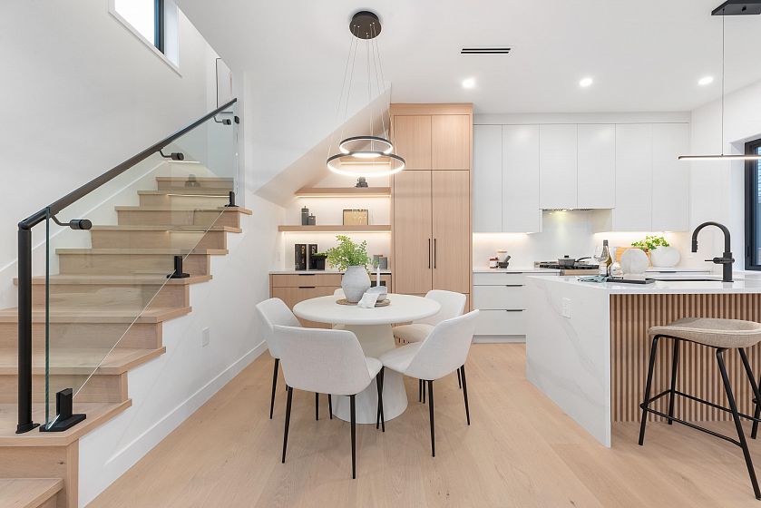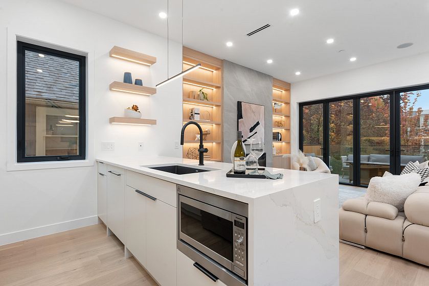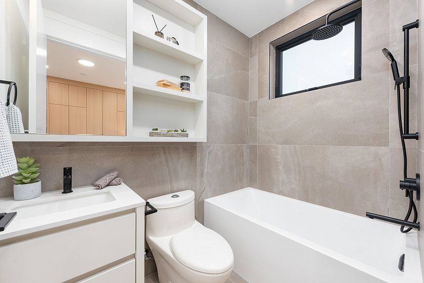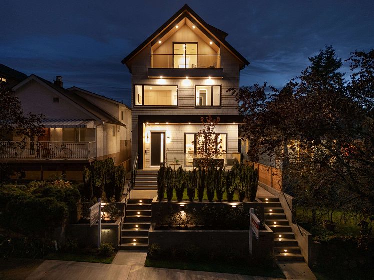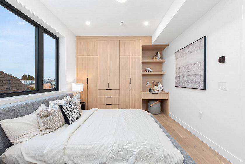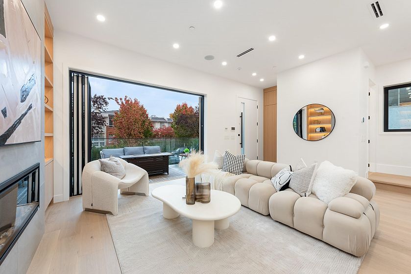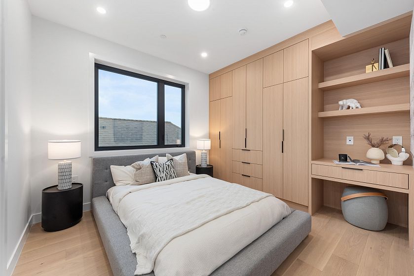 GDG Developments presents a stunning front unit duplex offering over 1,500 sqft of thoughtfully designed living space. This home features a fully finished crawl space & a garage equipped with built-in shelving, overhead storage, and an exhaust fan, ensuring exceptional storage throughout. Interior finishes include Ecobee smart thermostats, Silestone countertops from Spain, a built-in speaker system, solid core doors, painted cabinets, & engineered hardwood flooring. Enjoy year-round comfort with both radiant in-floor heating and a heat pump system. Located on a quiet, tree-lined street just steps from Hillcrest Community Centre, Queen Elizabeth Park, and the vibrant shops and restaurants of Main Street, this home seamlessly combines style, function, and an unbeatable location.
