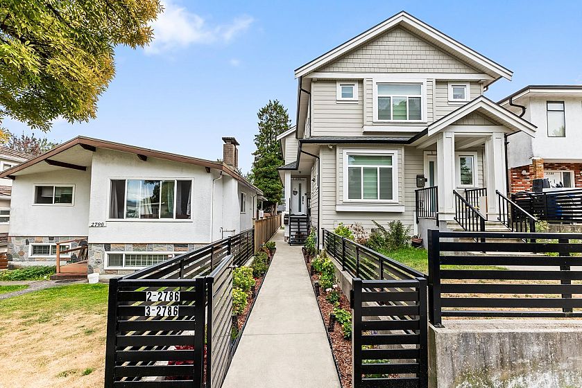 Welcome to this sleek modern Killarney half duplex with a 2-bedroom suite! Built in 2020, this half duplex offers approx. 1,795 sqft of stylish, open-concept living in one of Vancouver’s most desirable neighbourhoods. The main floor features a bright and functional layout with a contemporary kitchen, quality finishes, and a seamless flow between living and dining spaces – perfect for everyday living and entertaining. Upstairs boasts spacious bedrooms, including a primary with an ensuite. BONUS 2-bedroom basement suite with a separate entrance – the perfect mortgage helper! Situated on a quiet street, close to parks, schools, shopping, and transit. Designed for modern living, don't miss out on this one! OPEN HOUSE: SAT (OCT25)/SUN (OCT26) 1PM-3PM.