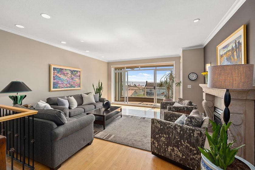 Downsizer’s dream in Dundarave! This 3-level, 3 bed + den/office, 4 bath duplex offers low-maintenance living with sprawling ocean views and integrated indoor-outdoor living. Enjoy a sunny south patio, 2 view balconies, and a charming front garden. Two bedrooms on the main level EACH with an ensuite bath, while the lower level offers a bedroom, full bath, separate entry and roughed-in plumbing - ideal for guests or an easy suite conversion. Steps to the Seawall and beach, to bask in the ever changing seascapes. Stroll to Dundarave Village for shops, services, grocery, cafes, and coffee with friends. The perfect blend of comfort, convenience, and location in one of West Vancouver’s most sought-after communities. Easy to show & Open House Sun, Dec 14th 2-3:30pm