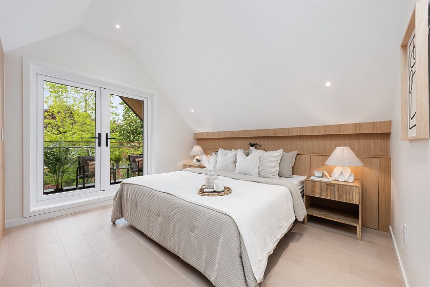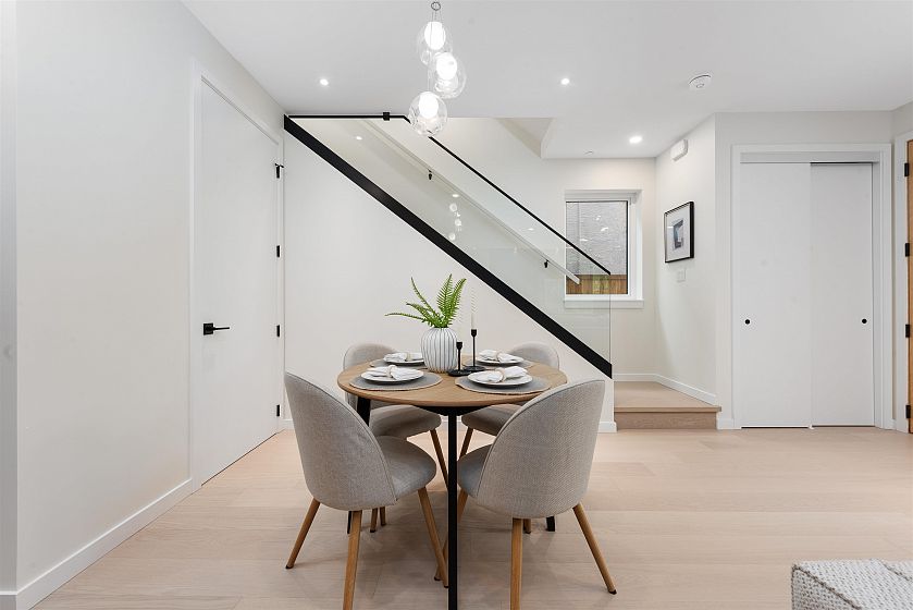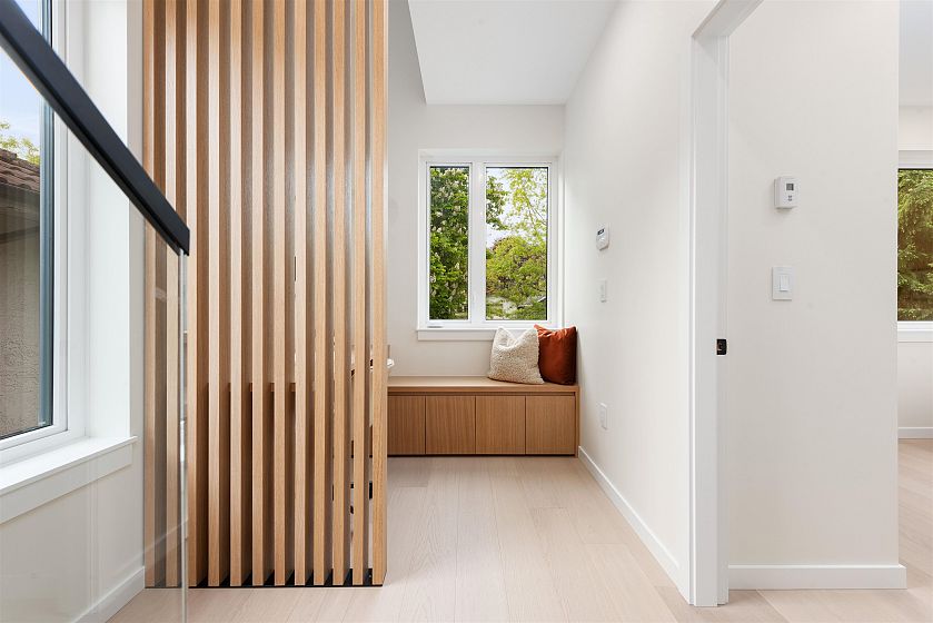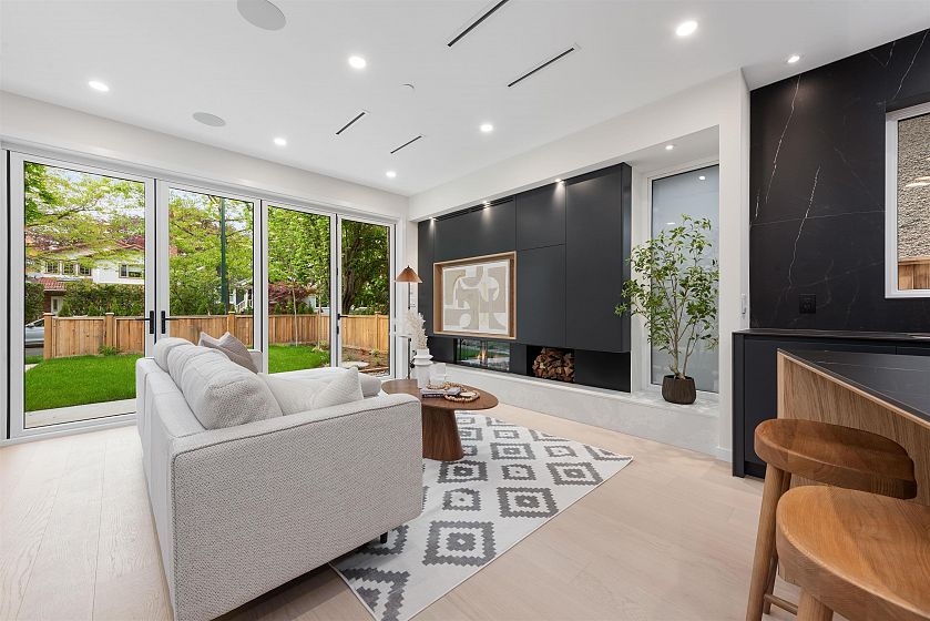 Welcome to this stunning 3 bed, 2.5 bath designer duplex in the heart of Kitsilano. Thoughtfully crafted by Architrix with interiors by PTL Design, this home features premium integrated appliances, radiant in-floor heating (4 zones), A/C with Nest, and Caesarstone & Vicostone surfaces. The sleek kitchen showcases custom millwork and a luxurious black porcelain island. Enjoy elegant lighting by Bocci, and relax by the natural gas fireplace. Custom millwork throughout, including a built-in office space by Farrell Custom Woodwork. Includes a detached garage, private outdoor space, and easily accessible crawl space for extra storage. Located on a quiet tree-lined street, steps to parks, shops, and transit. In General Gordon Elementary & Kitsilano Secondary catchments. Don't miss it!