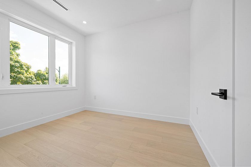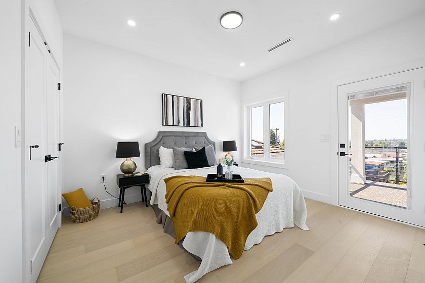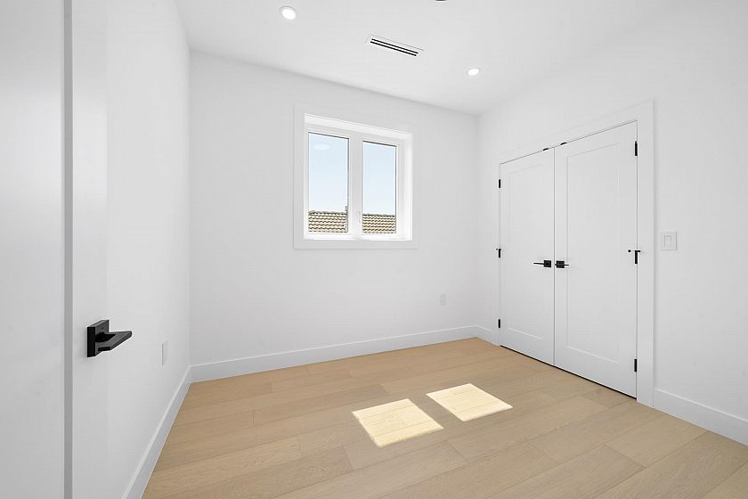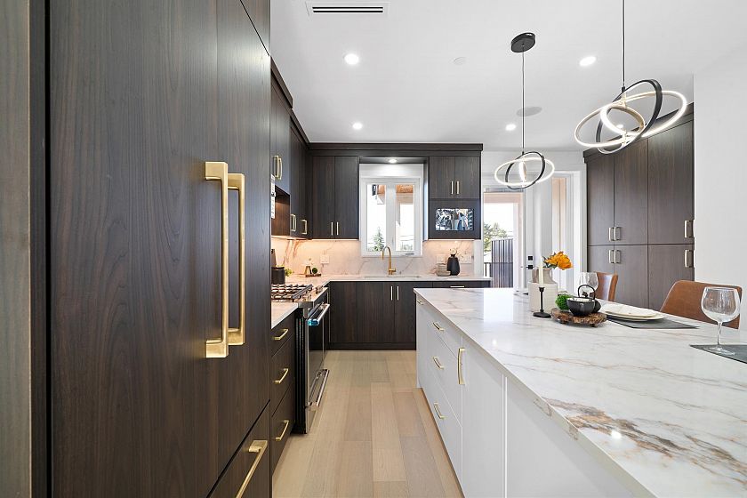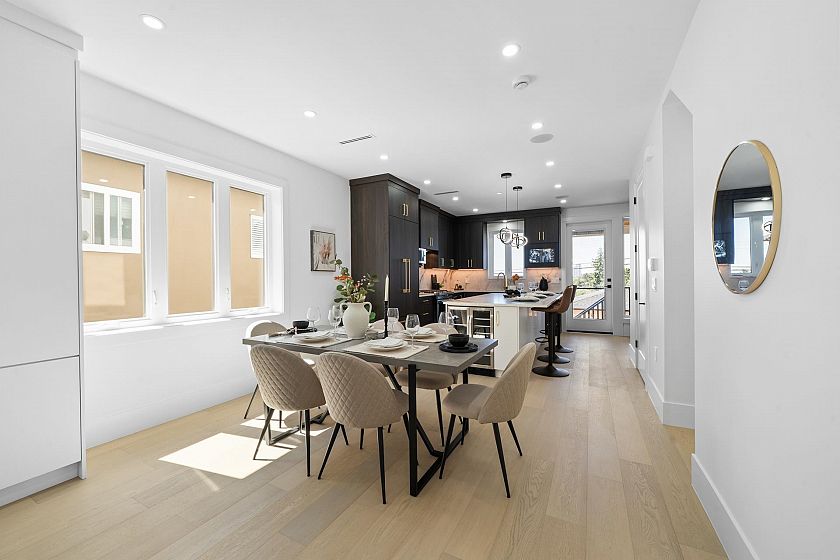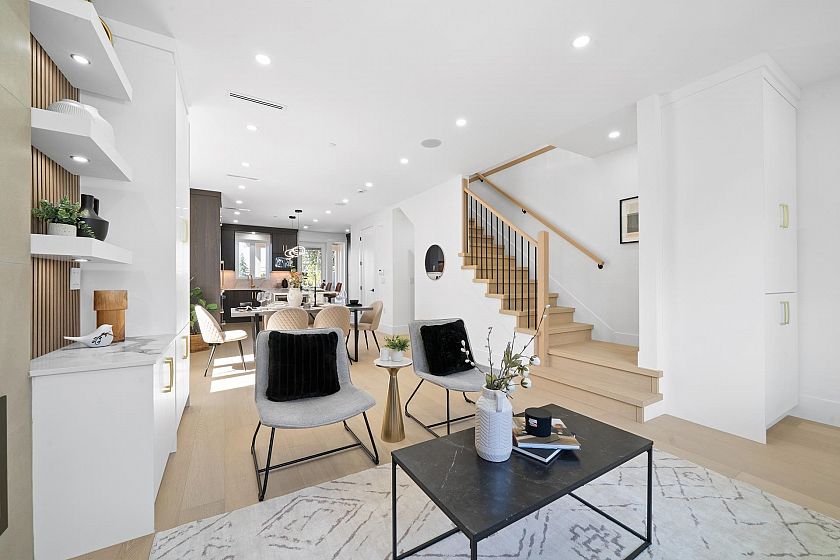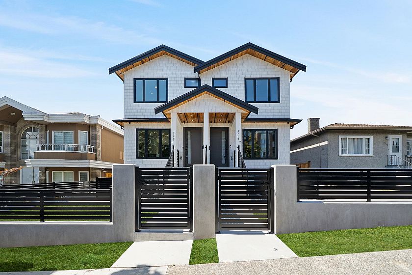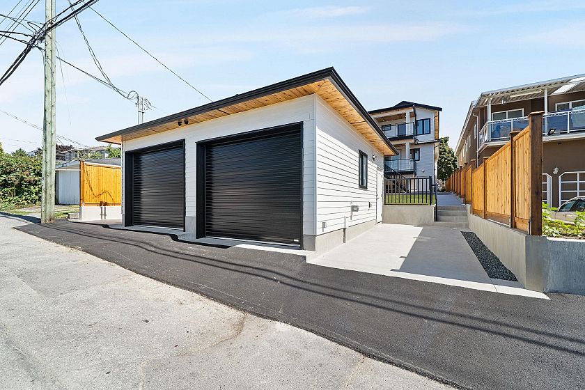 Stunning new half duplex, built with quality finishes and attention to detail. The main floor features an open-concept layout with a cozy fireplace, engineered hardwood floors, in-floor heating, a gourmet kitchen with premium integrated appliances, and quartz counters. Step outside to a covered deck overlooking your private backyard. Upstairs offers 3 bedrooms and 2 bathrooms, including a generous primary suite with walk-in shower, and private balcony with city views. The basement boasts a 2-bedroom suite, ideal for rental income or extended family. Additional features include A/C, CCTV cameras, crawlspace for storage, garage plus carport parking. Located close to transit, schools, parks, and shops. A perfect blend of luxury, comfort, and convenience.
