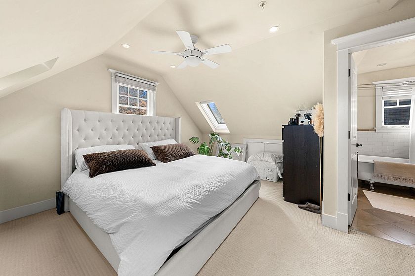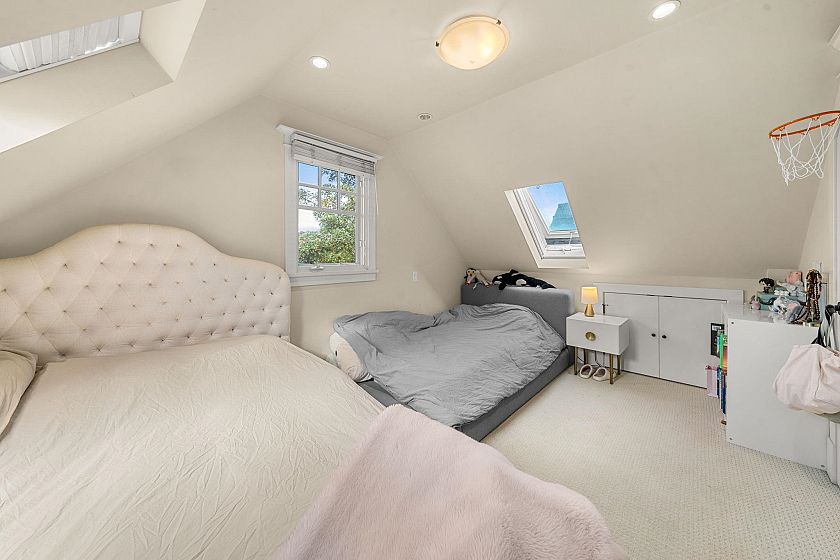 Exceptional value in the heart of Kitsilano Neighbourhood! Top half of an up-down style duplex - no strata fees! The 2200 block of MacDonald consists entirely of heritage homes, creating a special pocket of the neighbourhood with curb appeal for the entire street. The main floor features cherry hardwood flooring, a large, windowed kitchen with granite counters and gas stove, an expansive living room with gas fireplace, and a sizeable office with sliding doors that could act as a 3rd bedroom. Upstairs features 2 large bedrooms, with a WIC for the primary, and a Jack-and-Jill style bathroom. Located right in the middle of Kitsilano, this home is walking distance to the beach, parks, and all the local favourites this wonderful neighbourhood has to offer.