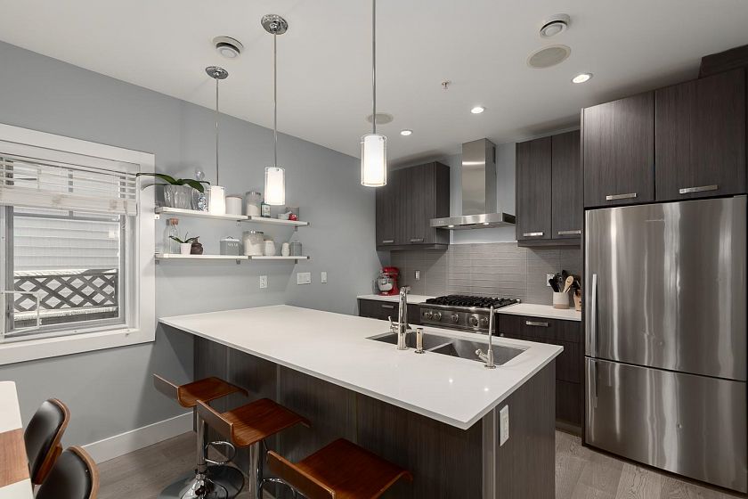 Beautiful private front half-duplex in the heart of Mount Pleasant, perfectly located along 'the cherry blossom 10th Ave corridor' bike path. This quality-built, heritage- style home features an open main floor with spacious living, dining, and a chef's kitchen-ideal for entertaining. Enjoy fisher & Paykel and Viking appliances, gas cooktop, quartz counters, engineered hardwood floors, 9' ceilings, radiant floor heating throughout, HRV, and A/C. Upstairs offers 3 bedrooms on the second floor plus a versatile top-floor bonus room perfect as a 4th bedroom, media room or playroom with 3 piece bath & north facing deck with lovely views. Rain screened exterior & single garage. Move in & enjoy everything this vibrant neighbourhood offers. China Creek Park and rapid transit just blocks away.