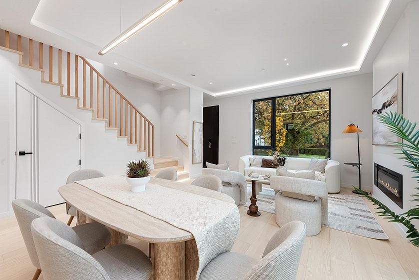Rare opportunity to own a refined duplex style home in Vancouver’s prestigious Westside. Quietly situated along Adera St near 66th Ave, Adera Arch blends contemporary design with West Coast elegance. Developed and architecturally designed by Livarch Developments Ltd, this boutique 4 units development showcases functional and livable layouts, generous private outdoor space, and premium craftsmanship. This home features oversized window flood the unit with natural light, Soaring 10 ft ceiling on main level, expansive windows, premium Miele and Bertazzoni appliances package, custom cabinetry and wardrobe, and zoned A/C. Ideally located near Dr. R.E. McKechnie Elementary and Magee Secondary, as well as shopping, parks, and transit. First open Oct 25/26 2-4 pm