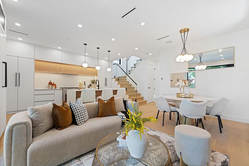 Built by renowned Westside builder Mann Bros Construction, this brand-new front 1/2 duplex in the heart of Kitsilano is a masterpiece of design and craftsmanship, with no detail spared. This 3 bed, 4 bath home blends timeless style with modern comfort. The main floor boasts an expansive, open-concept layout with a sleek Miele kitchen, Dekton counters, custom cabinetry, and a 7-ft island. High ceilings, triple-glazed windows, radiant in-floor heat, and eclipse doors create seamless indoor-outdoor living. Features include A/C, built-in speakers, EV-ready garage, and smart home features. Spa-inspired bathrooms feature Riobel and Kohler fixtures, frameless glass showers, and smart toilets. Enjoy mountain views in one of Vancouver’s most walkable and family-friendly neighbourhoods.
