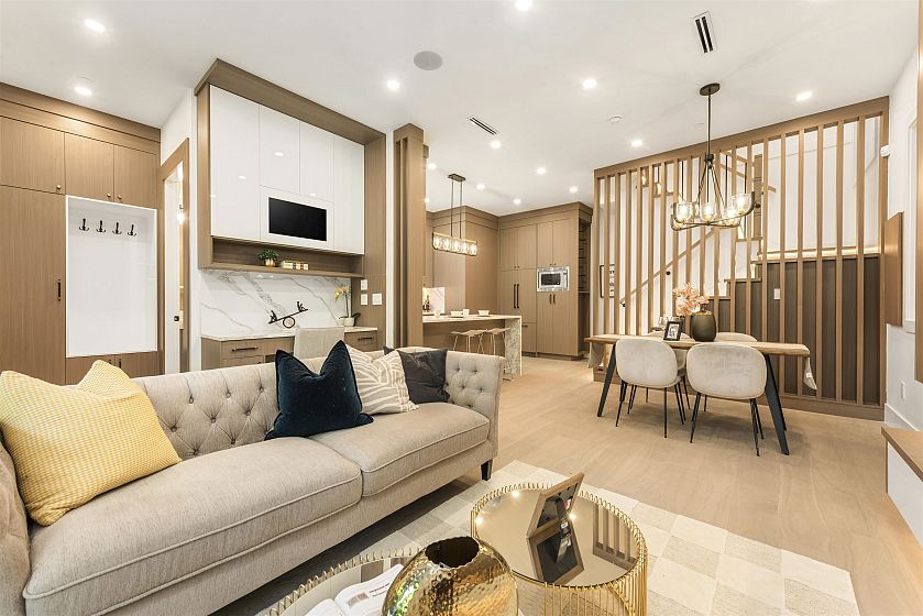Beautiful FRONT DUPLEX in PRIME location. As soon as you walk through the front door, you will instantly be impressed with the QUALITY of construction and MODERN finishings. The main floor features 10' HIGH CEILINGS, ENGINEERED HARDWOOD flooring, CUSTOM BUILT-INS, a great layout with dedicated living & dining room space, & OVERSIZED BI-FOLD WINDOWS that provide the ultimate INDOOR/OUTDOOR experience. The 2nd floor offers 3 bedrooms on the SAME LEVEL, perfect for family living; while the level above boasts a large 4th bedroom with a FULL BATH and BALCONY. Can also be used as a, REC ROOM, OFFICE, STUDENT RENTAL, or NANNY SUITE. Located just a block & a half from Fraser St & a short walk to the future Mount Pleasant SKYTRAIN STATION, you don't have to sacrifice LOCATION for SPACE and QUALITY.