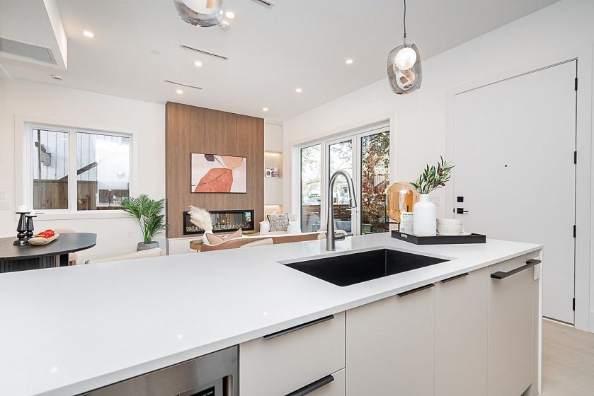 Brand new front duplex featuring a modern open-concept design with 10 ft ceilings on the main. Offers 3 bedrooms, 3 bathrooms + 2 office spaces, perfect for work and family life. Quality-built with Fisher & Paykel appliances, sleek finishes, and central air conditioning for year-round comfort. Enjoy your private patio and outdoor space ideal for entertaining. Contemporary design meets everyday luxury in this stunning new home.